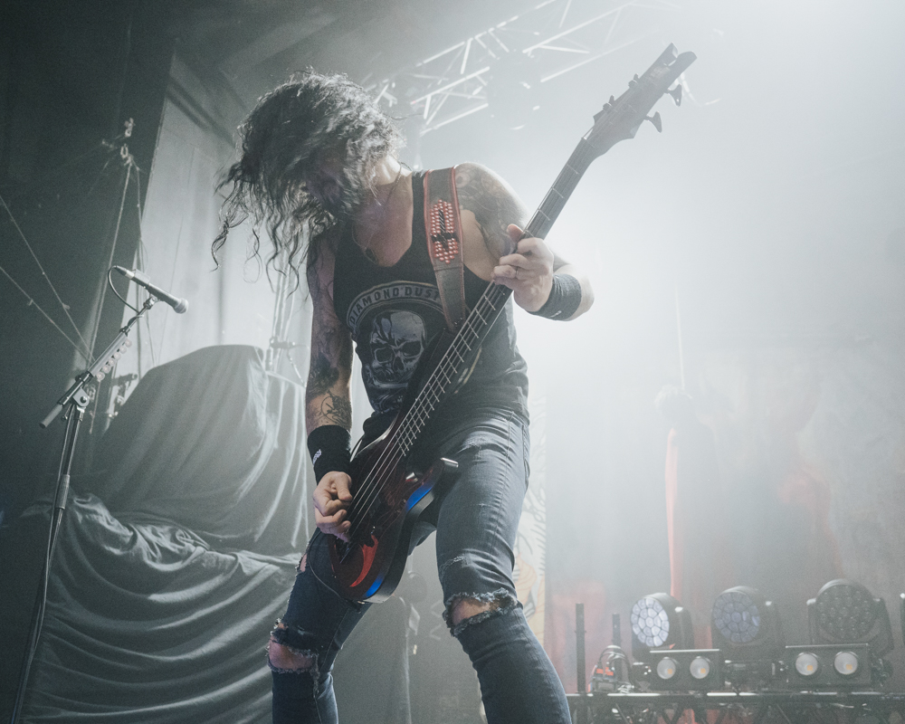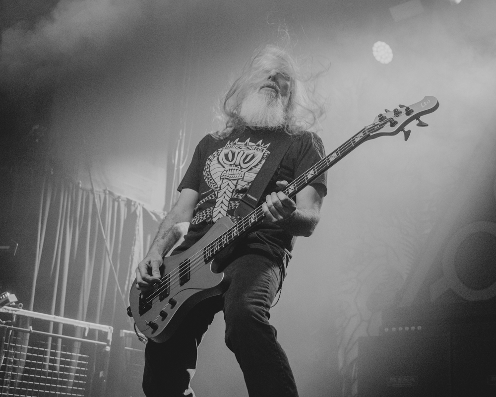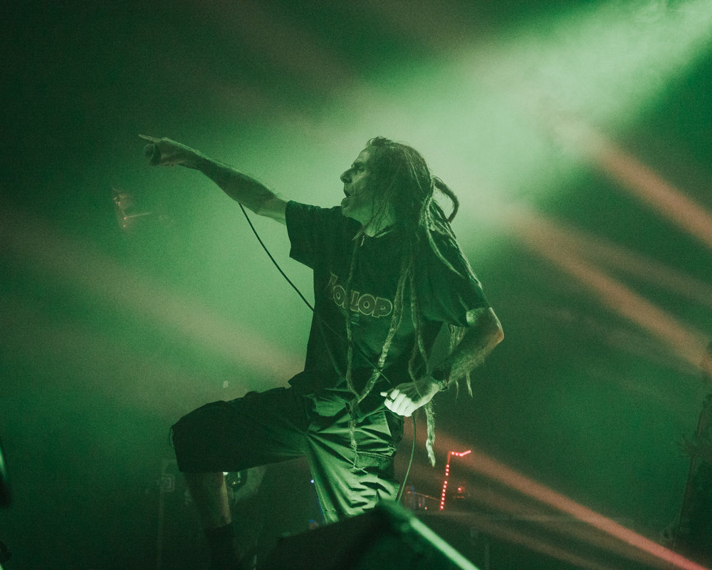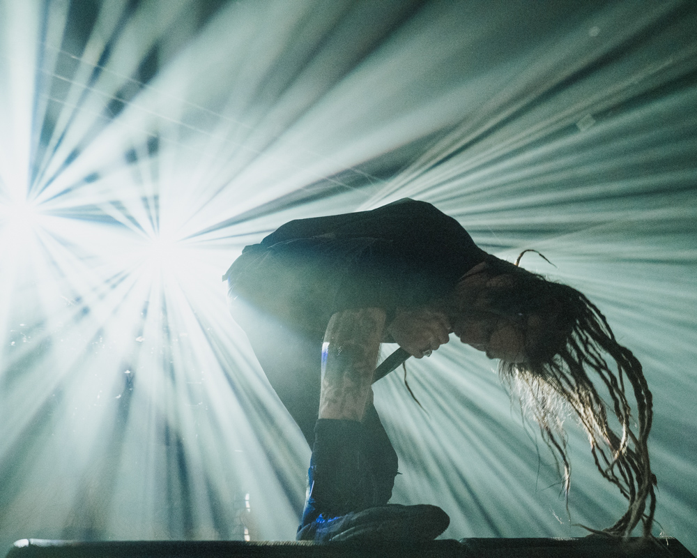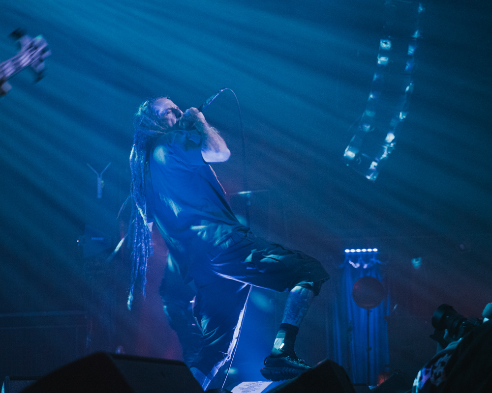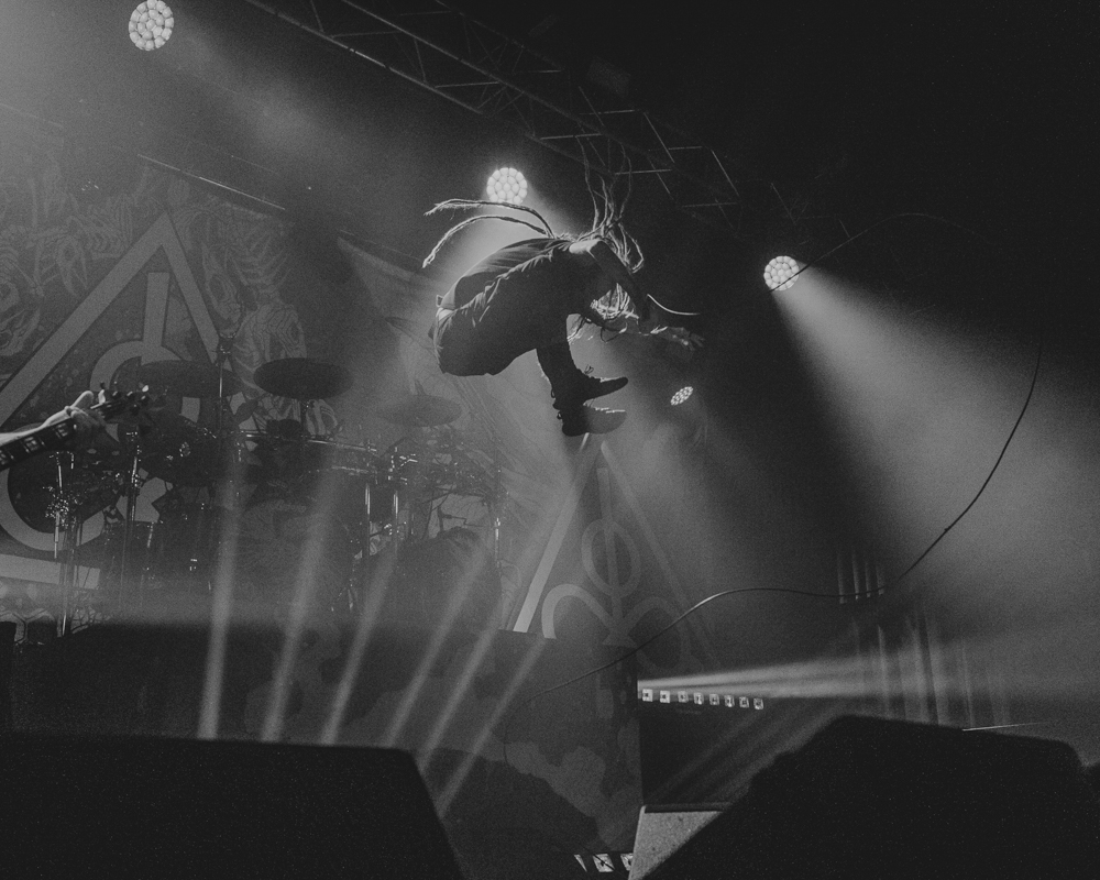 Opening their set with “Memento Mori” from their 2020 eponymous album, and then launching immediately into older tracks “Ruin” and “Walk With Me in Hell,” Lamb of God are sonically crushing, with frontman Randy Blythe a whirling dervish of a frontman, never stopping, continuously high energy, dreadlocks flying all over the place. One of the most impressive things about Lamb of God‘s live show is the level of musicianship on display. The band members are all virtuosos, and their intricate and complex arrangements are executed flawlessly on stage.
