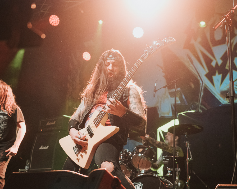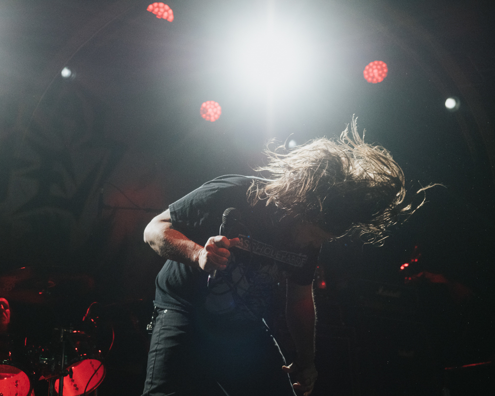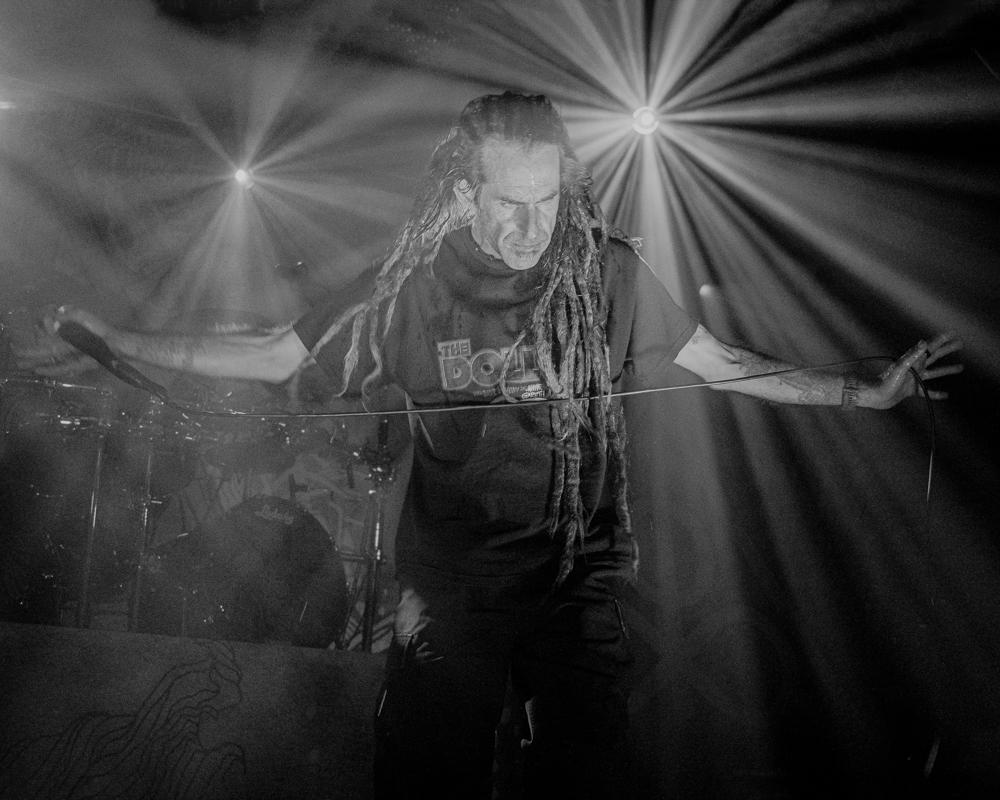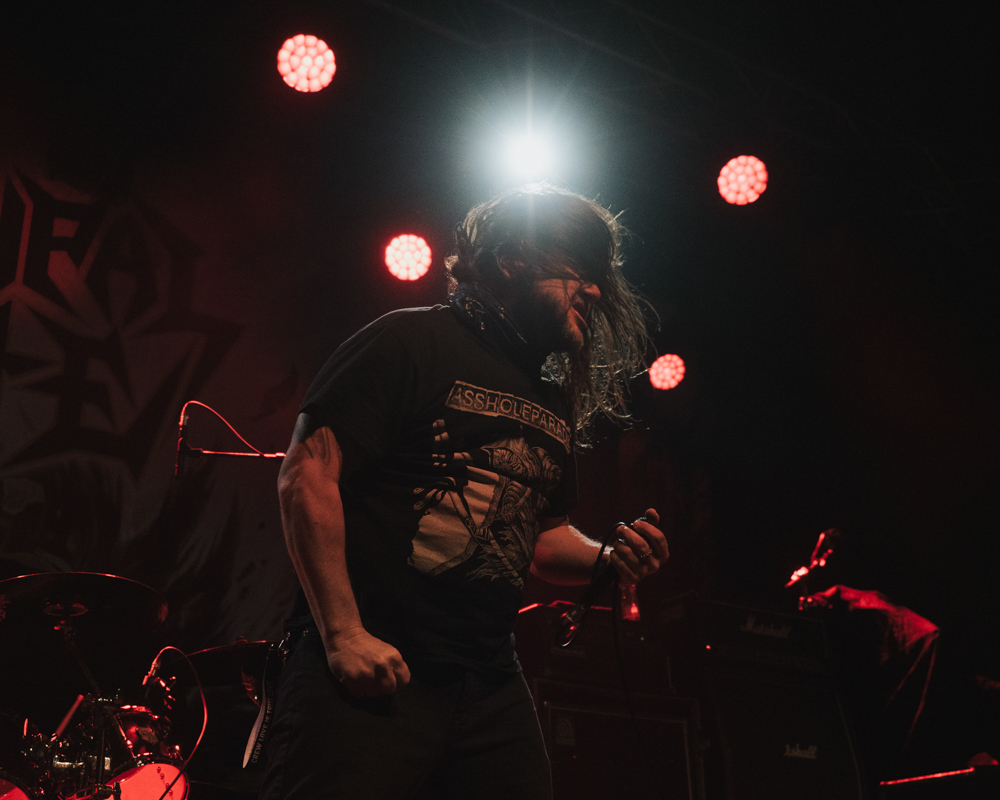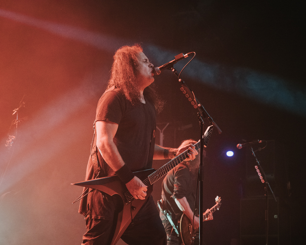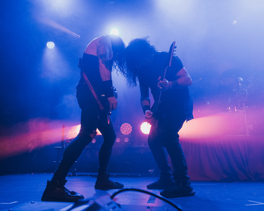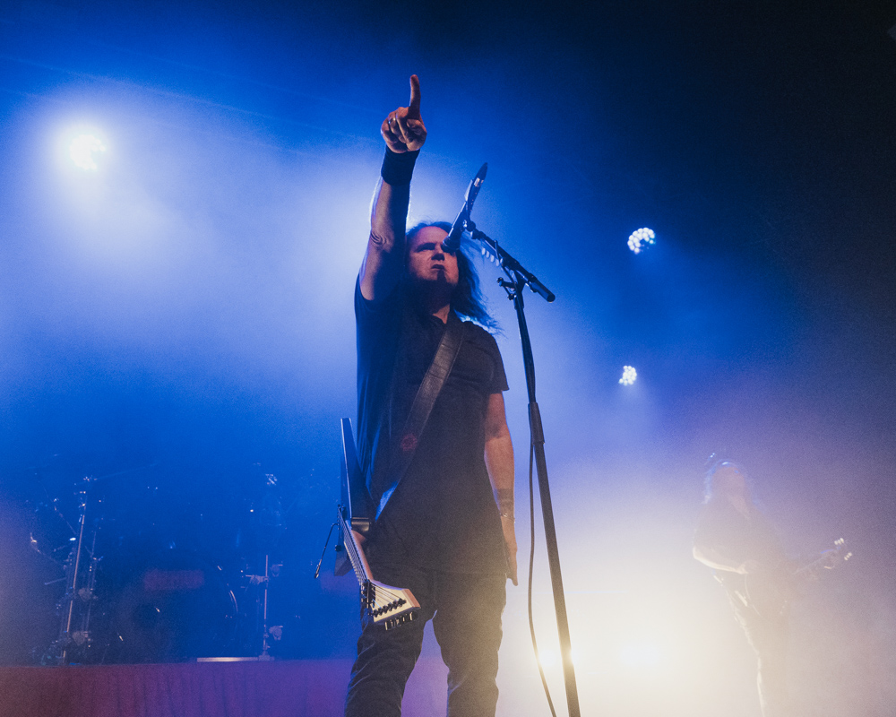 Opening their set with “Memento Mori” from their 2020 eponymous album, and then launching immediately into older tracks “Ruin” and “Walk With Me in Hell,” Lamb of God are sonically crushing, with frontman Randy Blythe a whirling dervish of a frontman, never stopping, continuously high energy, dreadlocks flying all over the place. One of the most impressive things about Lamb of God‘s live show is the level of musicianship on display. The band members are all virtuosos, and their intricate and complex arrangements are executed flawlessly on stage.