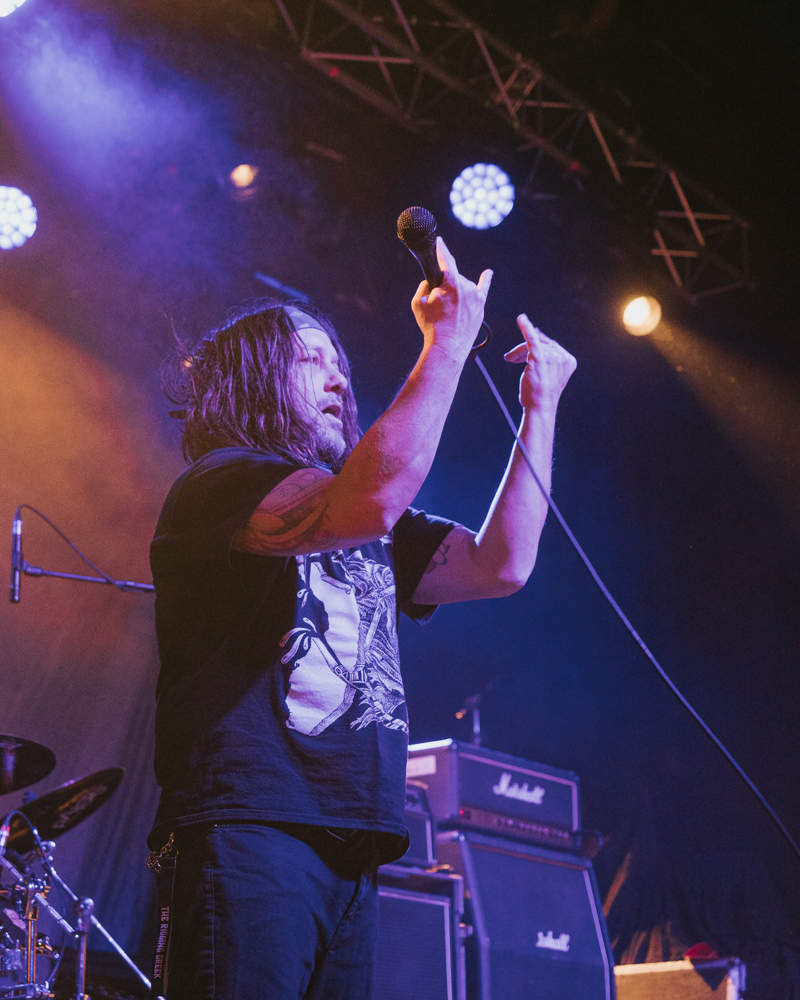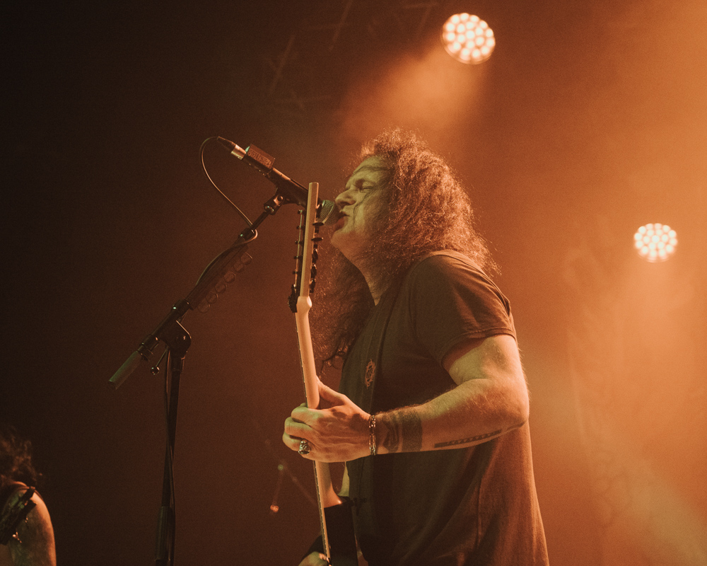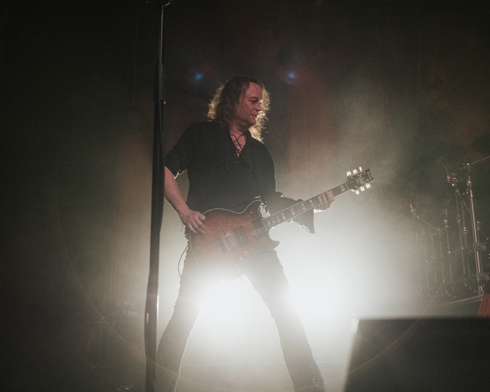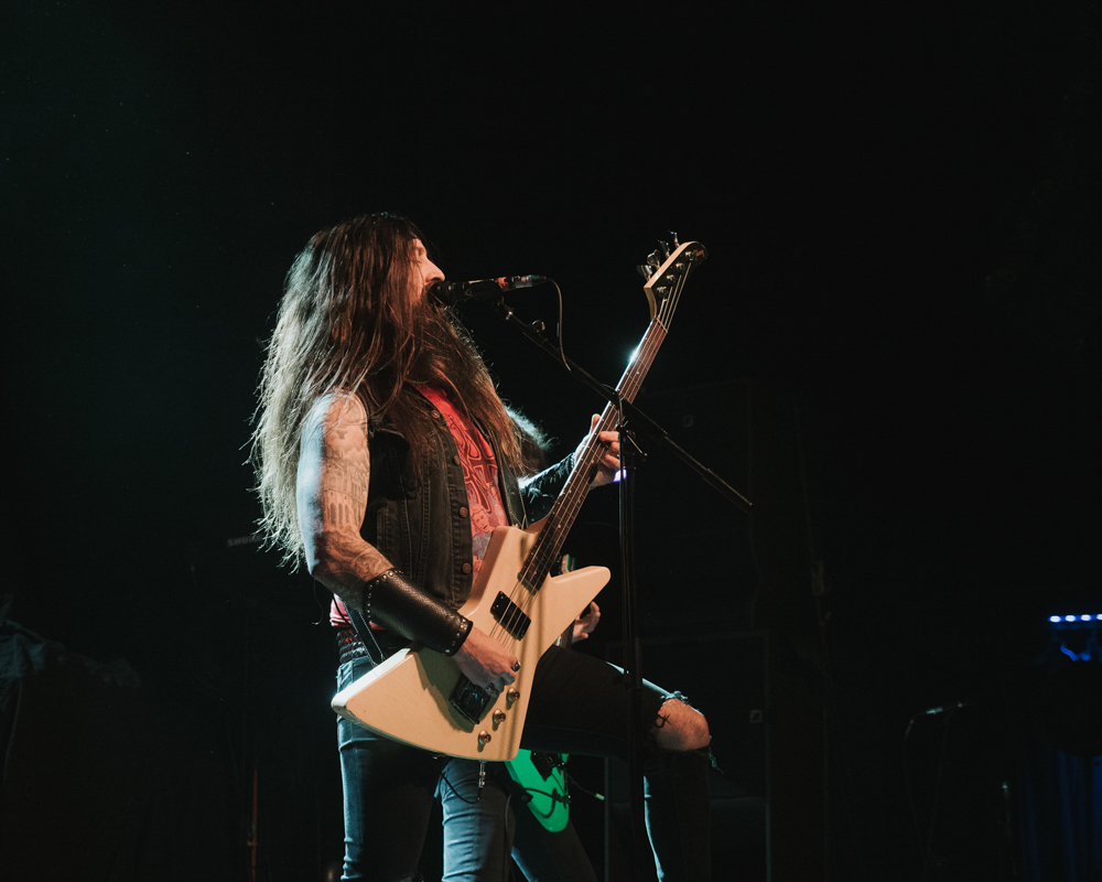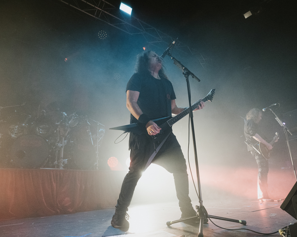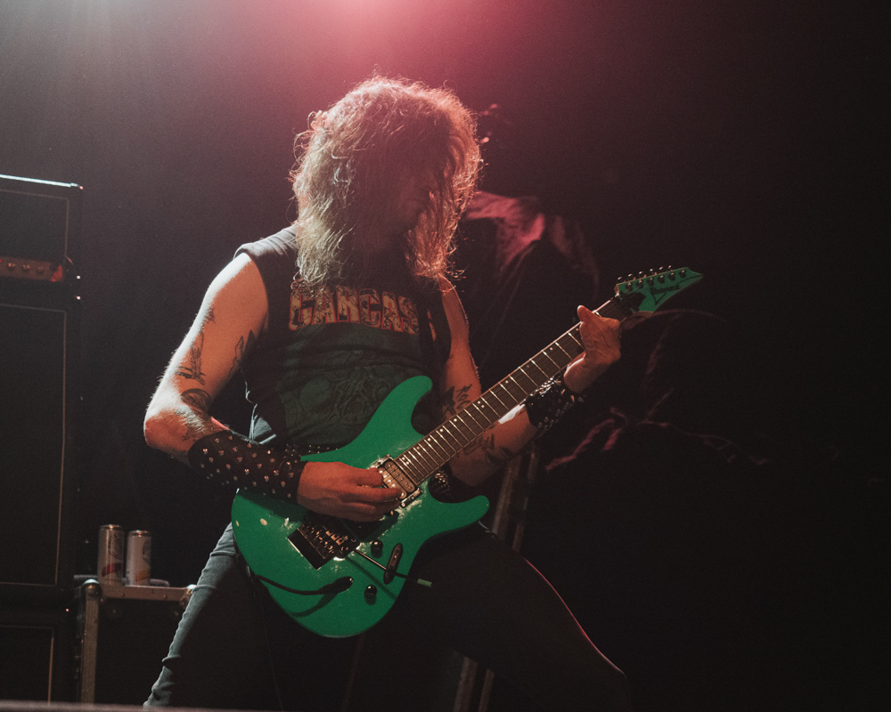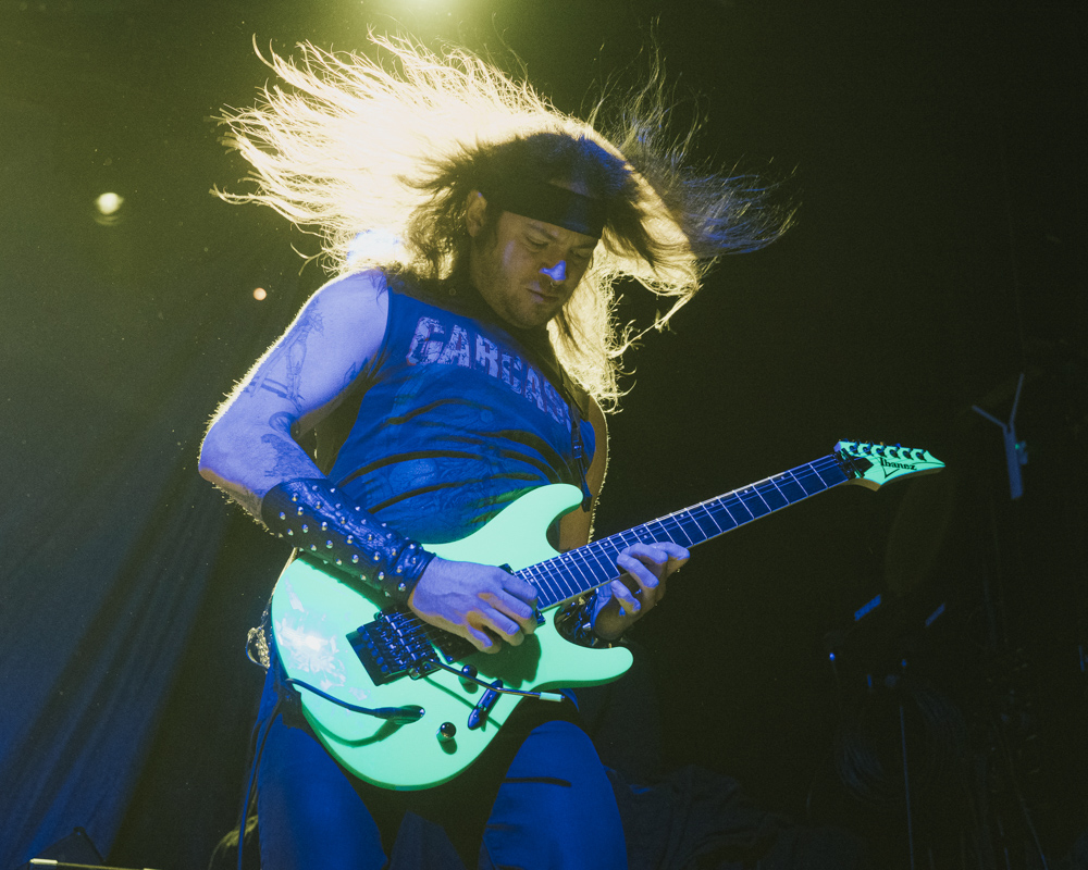 Opening their set with “Memento Mori” from their 2020 eponymous album, and then launching immediately into older tracks “Ruin” and “Walk With Me in Hell,” Lamb of God are sonically crushing, with frontman Randy Blythe a whirling dervish of a frontman, never stopping, continuously high energy, dreadlocks flying all over the place. One of the most impressive things about Lamb of God‘s live show is the level of musicianship on display. The band members are all virtuosos, and their intricate and complex arrangements are executed flawlessly on stage.