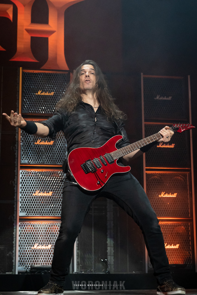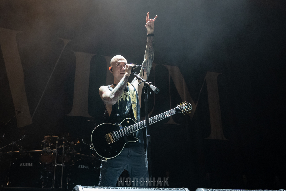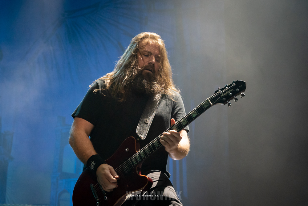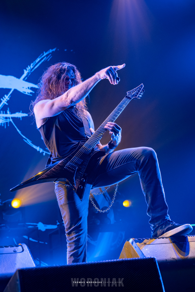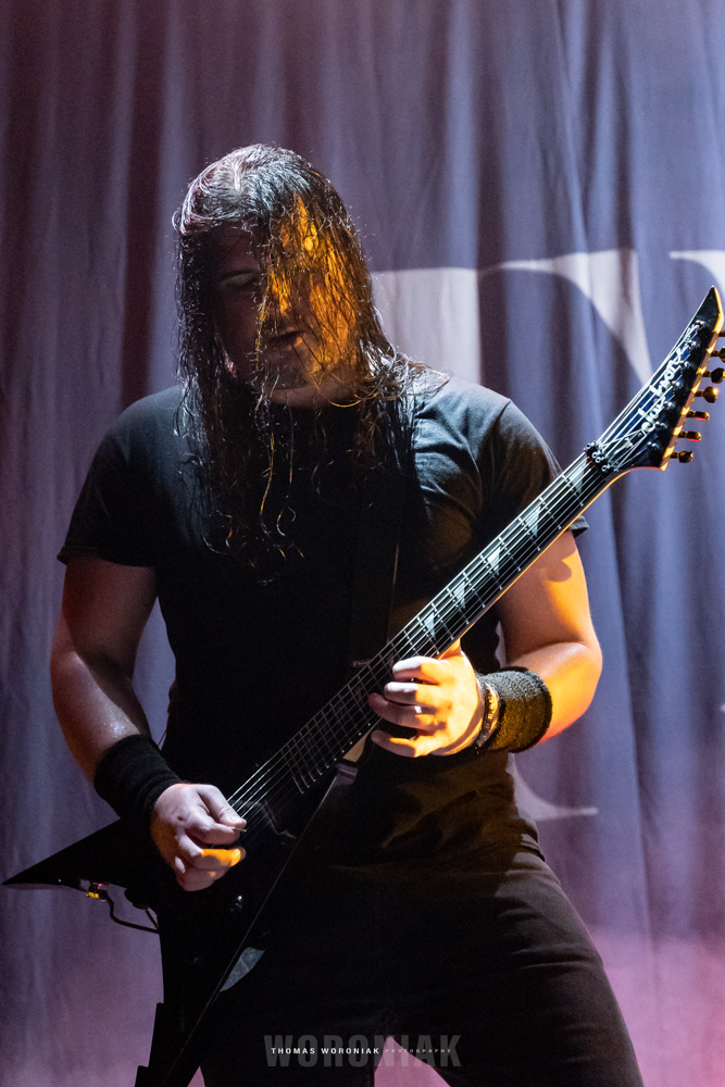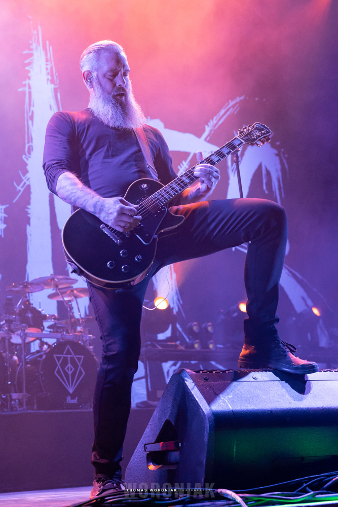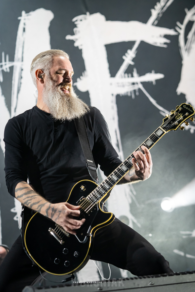 Sweden’s melodic death metal pioneers, In Flames, kicked off the evening with “Cloud Connected,” off their 2002 release, Reroute to Remain. Frontman Anders Fridén prowled the stage while the guitar duo of Björn Gelotte and Chris Broderick unleashed a flurry of guitar wizardry throughout the set. A personal favorite of mine was “Where the Dead Ships Dwell” from the 2011 album, Sounds of a Playground Fading. It’s been three years now since the band released their most recent effort, I, the Mask (2019), and we got to hear two tracks of the album, “Call My Name” and fan-favorite “I Am Above.” In Flames closed out their set with the cherished gamer track, “Take This Life,” off their eighth studio album, Come Clarity – the song was also featured in the Guitar Hero III: Legends of Rock video game.