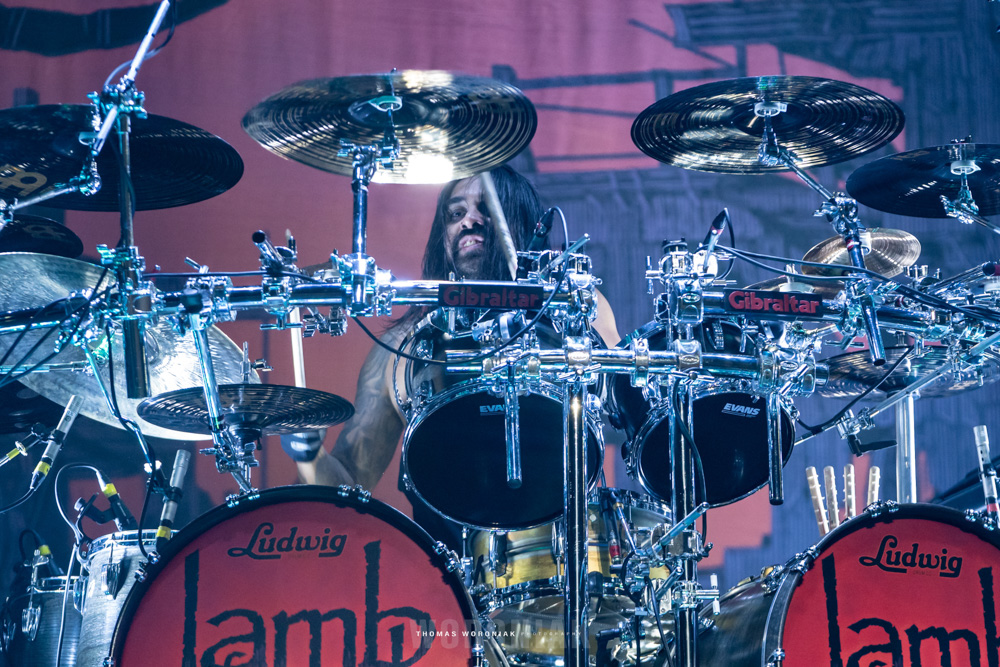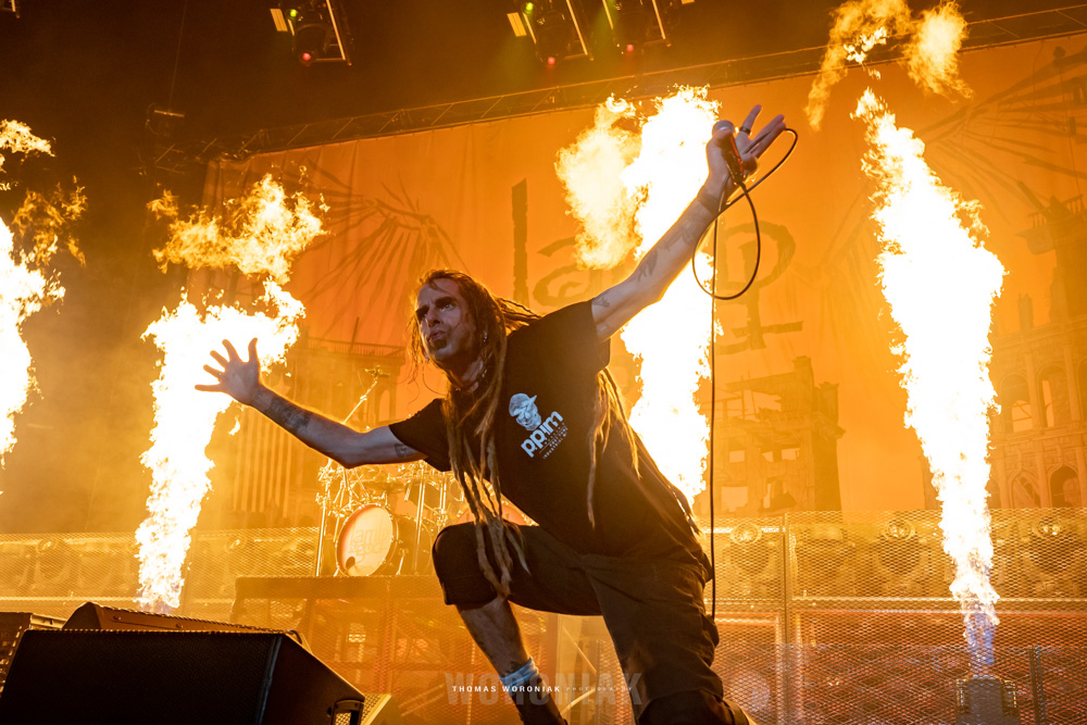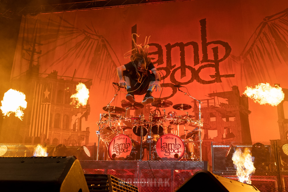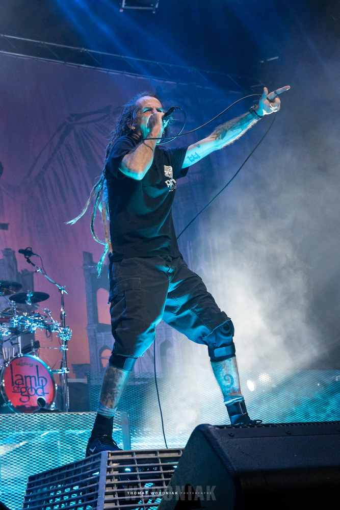 Lamb of God, the metal juggernaut out of Richmond, Virginia, were next to take the stage. I’ve seen them perform live several times over the years and they never disappoint. Frontman Randy Blythe is an unstoppable force on stage, in constant motion pacing the stage like a caged animal, leaping off risers as the pyrotechnics light the stage with flames during “Walk with Me in Hell” from their 2006 release, Sacrament. The setlist was full of some of their best and most loved tracks, such as “Now You’ve Got Something to Die For”, “512”, and “Ghost Walking.” Other highlights included “Laid to Rest,” which was cut short at first when Randy spotted an injured fan that needed medical assistance. Once the patron was cleared out of the area by medical staff, the band restarted the song from the beginning. They closed out the set with a crushing rendition of “Redneck,” with a massive whirlwind circle pit amidst the audience in front.