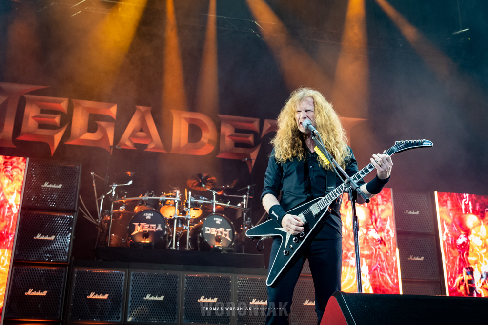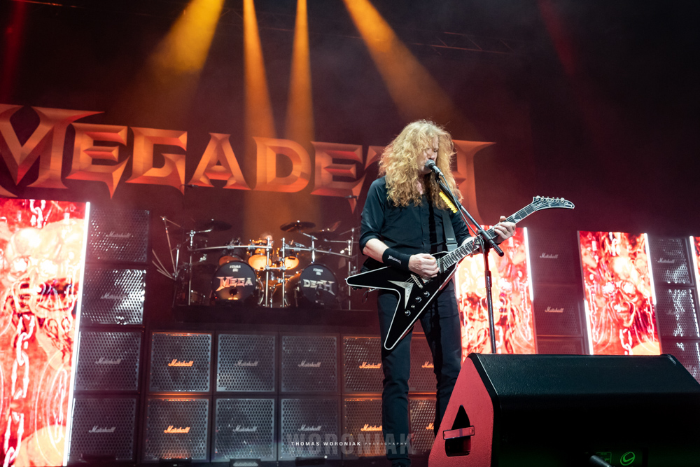 Last but certainly not least, one of thrash metal’s “Big Four”, the legendary Megadeth took the stage and opened their set with a blazing performance of “Hangar 18” from their 1990 studio album, Rust in Peace. The guitar duo of frontman Dave Mustaine and Brazilian virtuoso Kiko Loureiro offered a flurry of arpeggio-laden exchanges throughout the entire setlist. The set offered several of the band’s most memorable tracks from earlier albums, such as the title track off of the classic 1986 album Peach Sells… but Who’s Buying?, as well as “The Conjuring” from the same release. Other highlights included fan favorites “Sweating Bullets” and “Symphony of Destruction.” Mustaine and crew wrapped up the evening with one of my favorite Megadeth tunes, “Holy Wars… The Punishment Due,” featuring some phenomenal guitar playing from Loureiro and Mustaine.