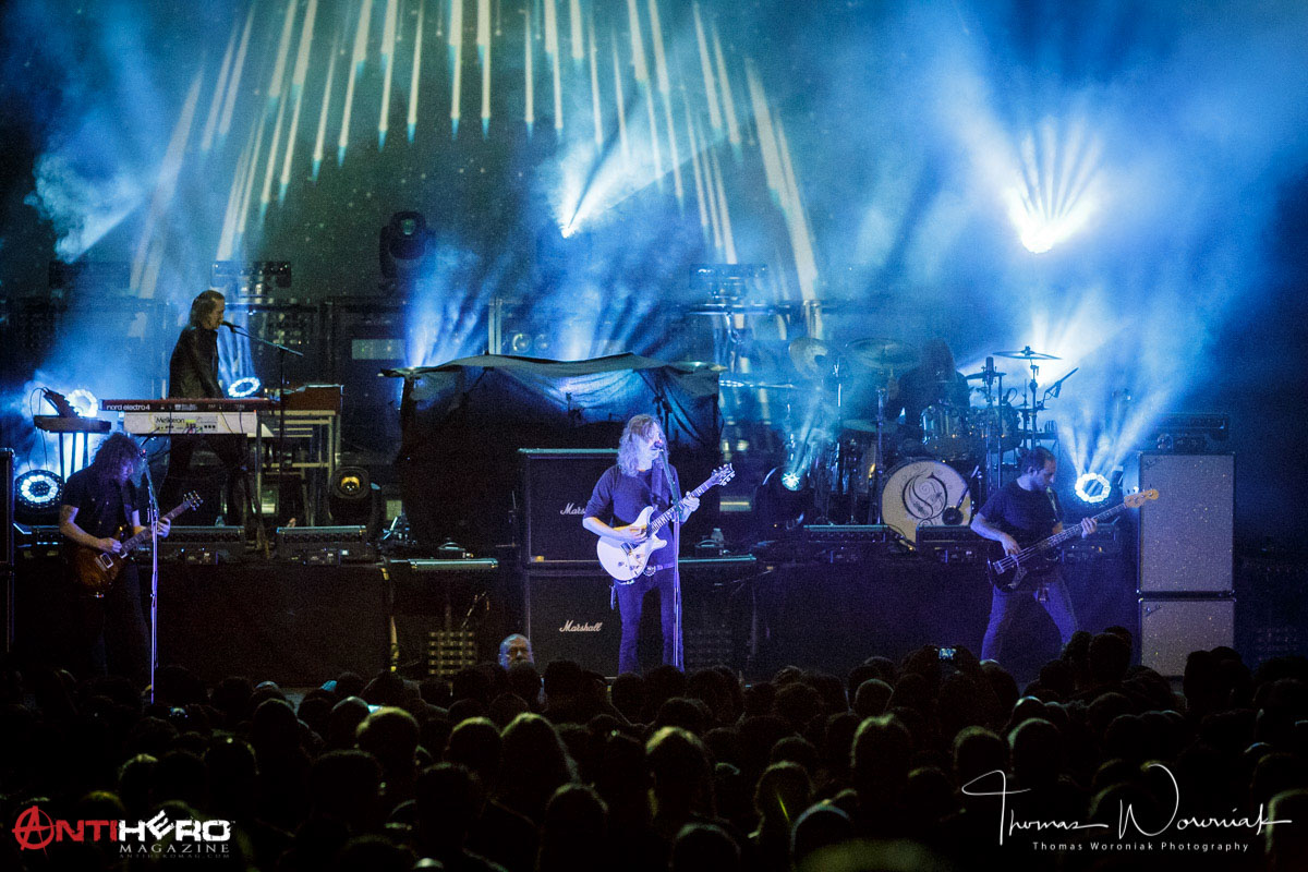 Opeth did a remarkable job following such a high-energy act, especially considering their songs are much less explosive. Opeth focused on their progressive elements, opening with the title track from their newest record, Sorceress, showcasing their secret weapon of keyboardist Joakim Svalberg, and moved from there into an excellent sampling from their discography, hitting both soothing, meandering prog pieces and furious death metal with equal aplomb – if you have any friends or family who love classic rock but don’t care for screaming, drag them to an Opeth show sometime and change their mind. Frontman and songwriter Mikael Akerfeldt led the proceedings with an easy charm, speaking to the crowd between songs with a relaxed cadence that called to mind the best NPR radio hosts. It lent a very intimate air to the evening, with a packed theater feeling like a group of people gathered around a campfire. Opeth‘s restraint and timeless songwriting style were an excellent balance to Gojira‘s fury, allowing the band’s quieter moments to shine – “Cusp Of Eternity” in particular was a tour de force in prog, sounding remarkably like an evil Pink Floyd – and lending the bombastic moments like “Heir Apparent” or the climax of “Ghost Of Perdition” even more strength.