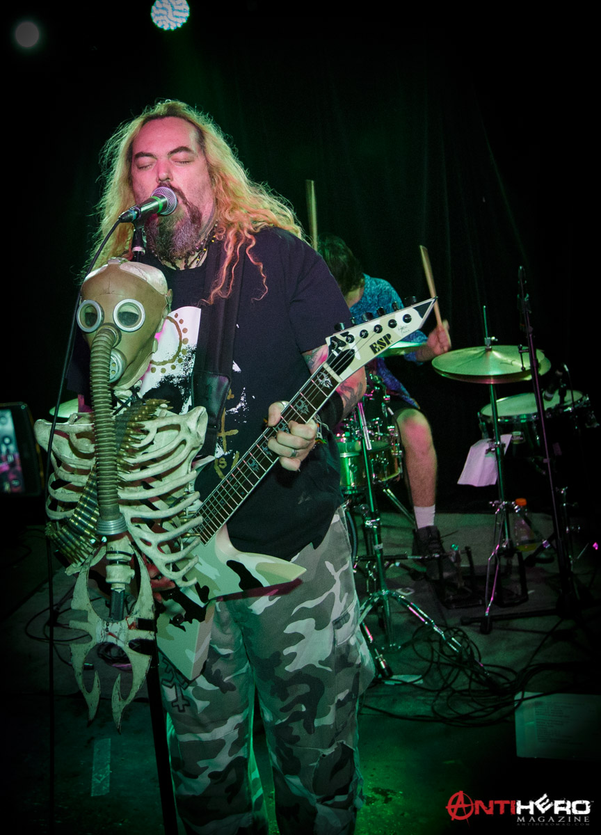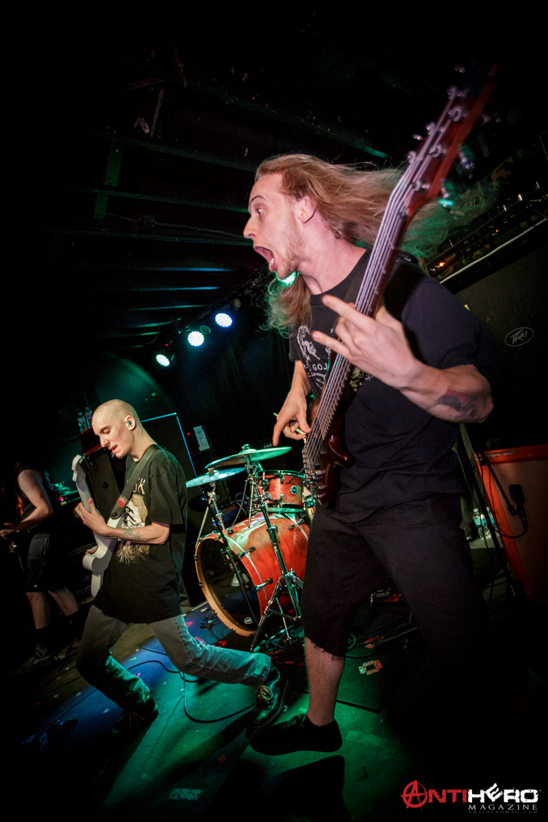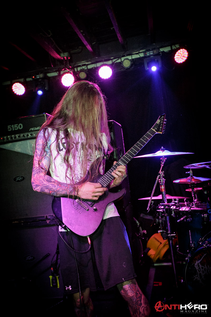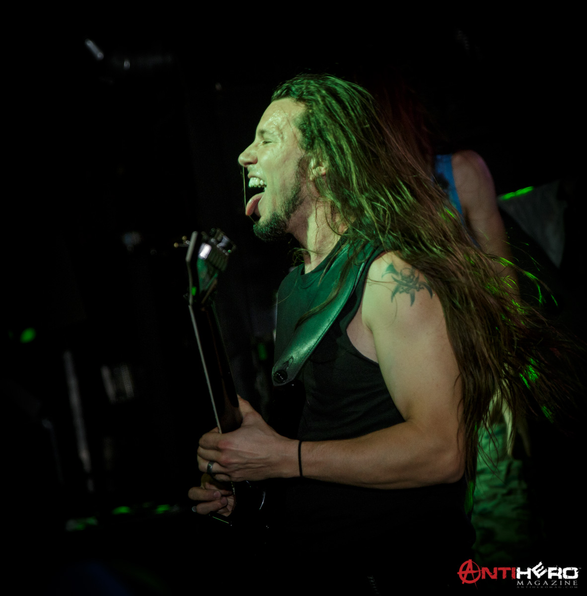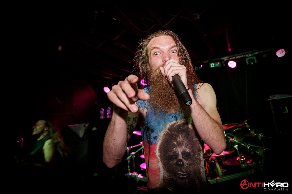 After that was Canton, Michigan thrash metal band, Battlecross. The emphasis in their sound is certainly on the metal, but thrash heavily flavors the melodic segments and the captivating solos, of which there was at least one per song, usually more. Guitarists Hiran Deraniyagala and Tony Asta frequently harmonized or traded back and forth through passages equally indebted to Iron Maiden and Kill ‘Em All-era Metallica. Frontman Kyle “Gumby” Gunther loped around the stage looking like Encino Man in a tie-dye tank top bearing the face of Chewbacca, and that sense of fun was present in their set, which was the lightest of the night but was a welcome refresher after the intensity of the first two acts. The only downside was the volume was far too loud, leaving the vocals sounding thin and just seeming out of place when all the other bands had an excellent mix.