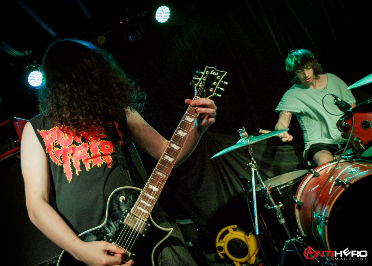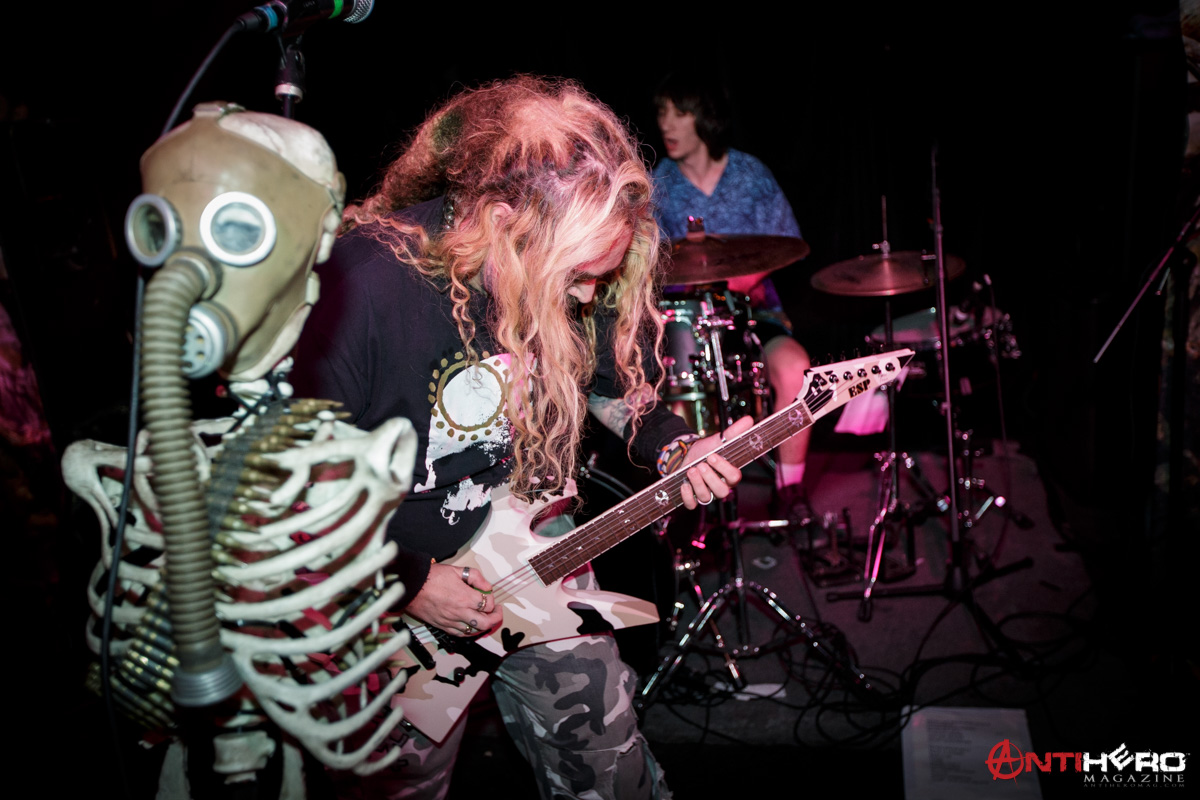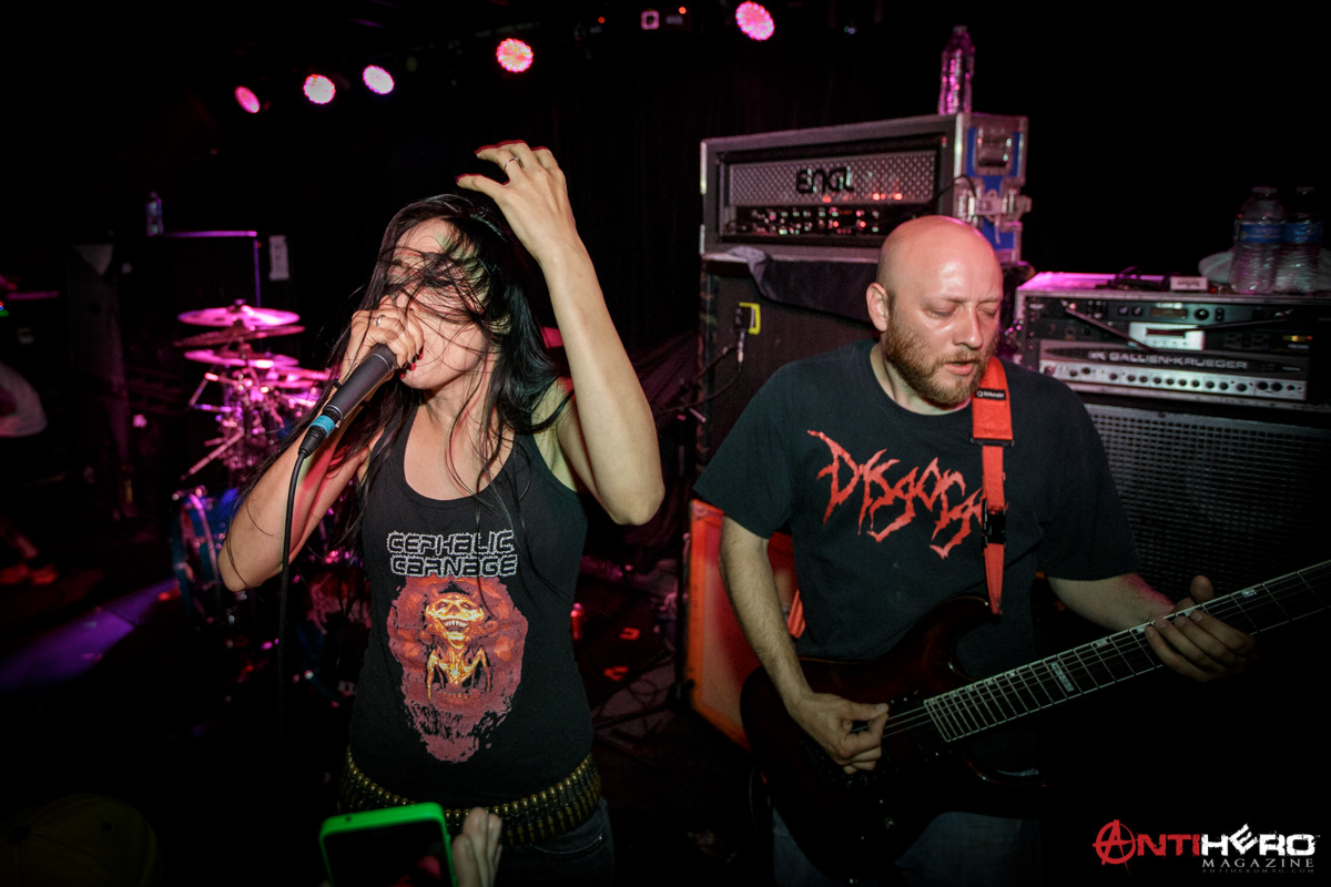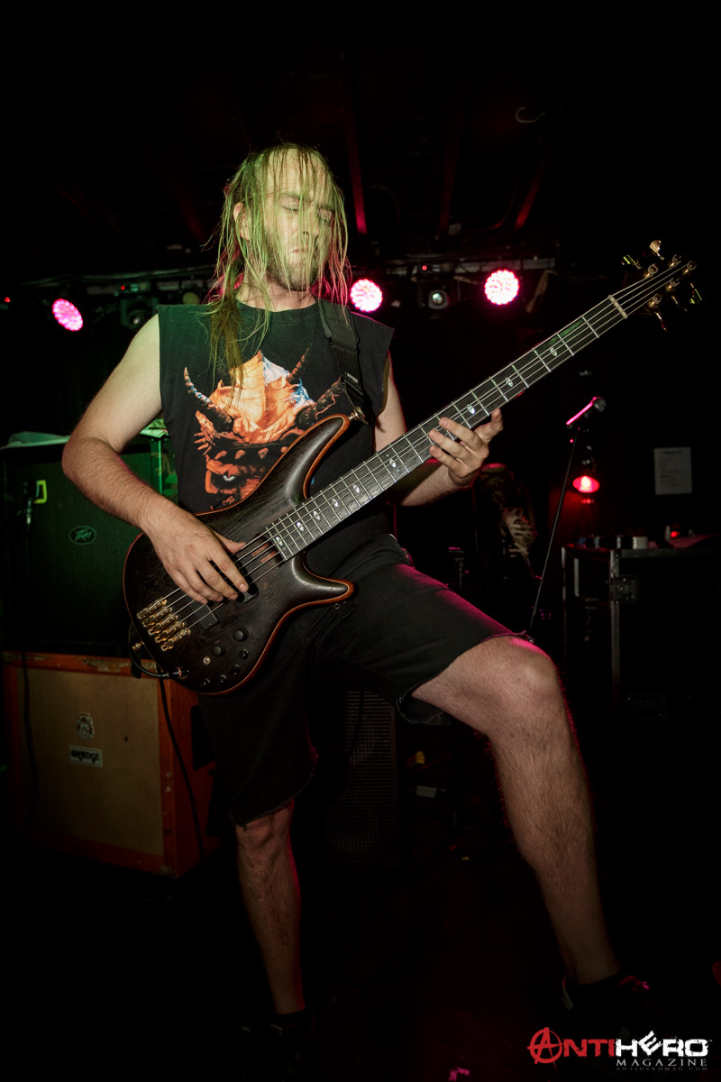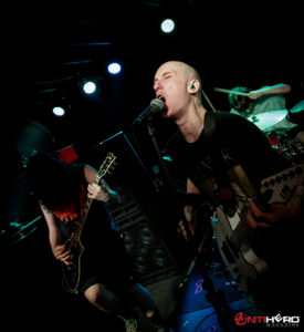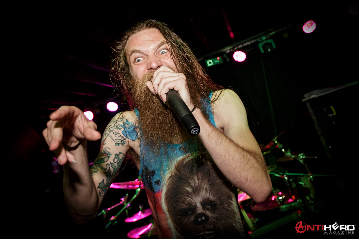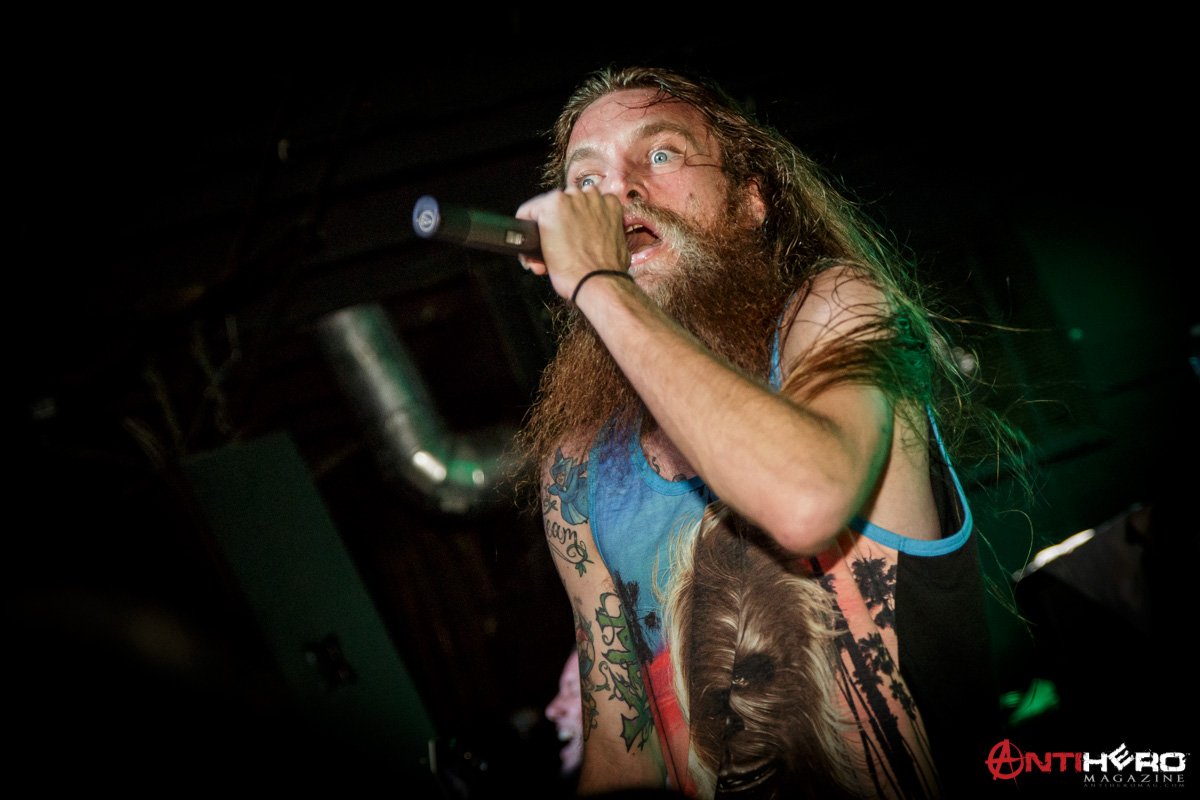 After that was Canton, Michigan thrash metal band, Battlecross. The emphasis in their sound is certainly on the metal, but thrash heavily flavors the melodic segments and the captivating solos, of which there was at least one per song, usually more. Guitarists Hiran Deraniyagala and Tony Asta frequently harmonized or traded back and forth through passages equally indebted to Iron Maiden and Kill ‘Em All-era Metallica. Frontman Kyle “Gumby” Gunther loped around the stage looking like Encino Man in a tie-dye tank top bearing the face of Chewbacca, and that sense of fun was present in their set, which was the lightest of the night but was a welcome refresher after the intensity of the first two acts. The only downside was the volume was far too loud, leaving the vocals sounding thin and just seeming out of place when all the other bands had an excellent mix.