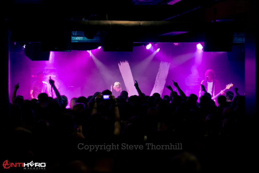 I meet up with other friends and familiar faces from the fan community and we head straight to the front, even bypassing the bar to ensure our regular spot and await the first support band. The Critics were first on, who are self-described as ‘dirt pop.’ They had an 80’s synth feel which seemed quite in contrast to the punk rock night I was geared up for. They performed well and the crowd responded positively towards their set. But definitely a bit too pop for me.