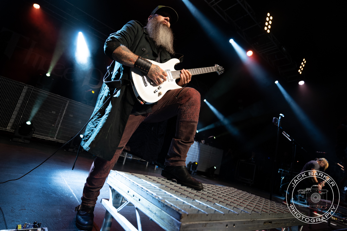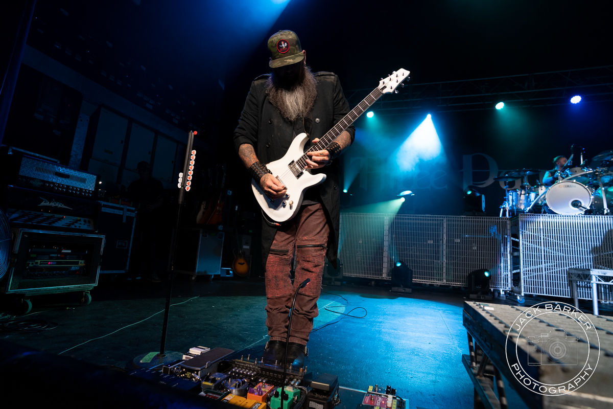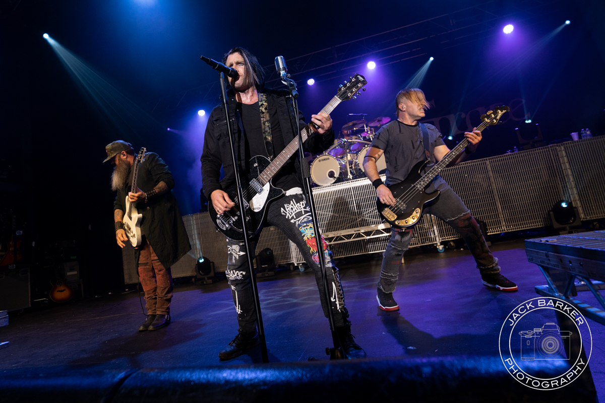While Canadian Prime Minister Justin Trudeau may have gotten himself in a spot of trouble for his musical performance in London in recent days, Toronto’s rock heavyweights Three Days Grace have also been in the UK on their EXPLOSIONS world tour promoting their latest album. We caught the final night of the tour at Birmingham’s O2 Academy where the band were joined by 10 Years from Knoxville, Tennessee. With the stage in almost darkness (a theme that would continue throughout the set), the band made their way on stage with lead vocalist Jesse Hase wearing a strange plague doctor mask.