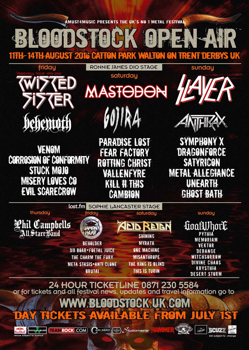 The time has arrived again at Catton Hill, Derbyshire – Bloodstock Open Air returns for the 15th year and it’s bigger and better! Bloodstock is the UK’s biggest heavy and black metal festival. This year’s line-up is definitely a unique one – with headliners Twisted Sister, Mastodon, and Slayer, making it a fantastic festival.
