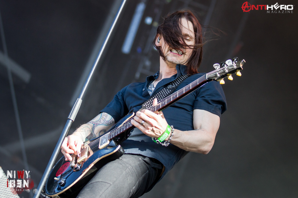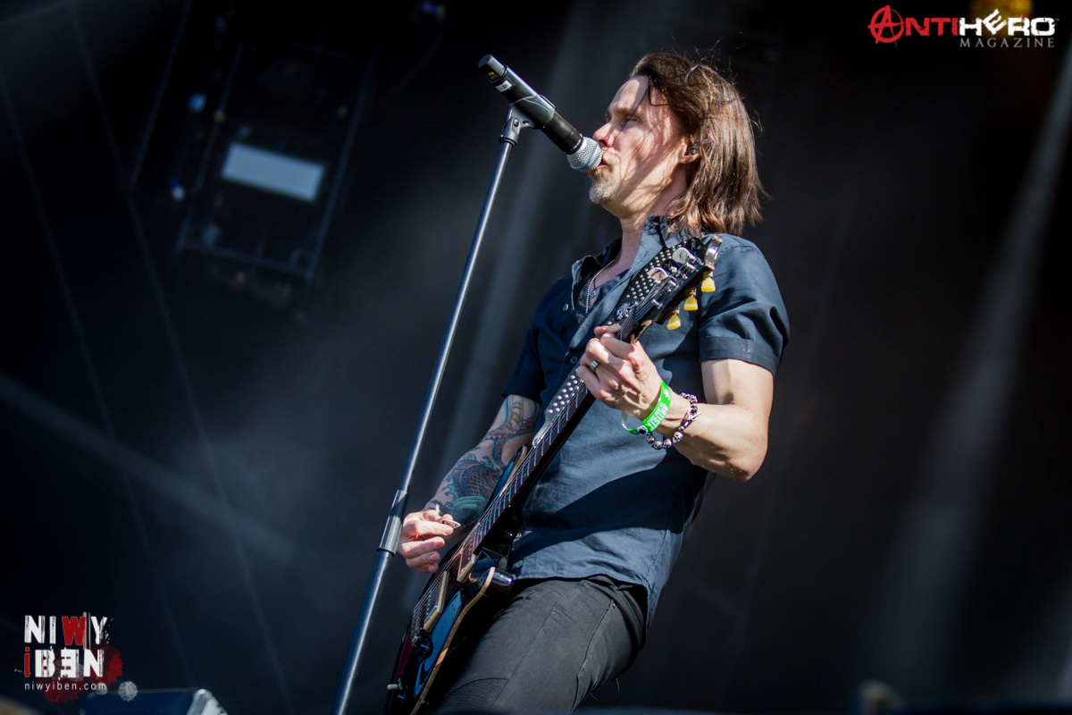 Alter Bridge are a band that, despite the musical pedigree of the band members, have until very recently only really been commercially successful in a few areas. Over the last few months however, their popularity appears to have significantly increased and now it just appears that everybody is an Alter Bridge fan. The sound of the band is a unity of huge melodic choruses supplemented by the raw metallic edge of Mark Tremonti’s exquisite guitar playing. Soulful at times, brutal at others. Sadly, their set today was just an hour but the band delivered all they had in what I found to be a very impressive set. Myles Kennedy, the man at the helm, is a vocalist of quite some stature. Alter Bridge’s set dips a toe into all of their five-album catalogue from their debut release, One Day Remains, the heavy “Metalingus”. Their latest album, The Last Hero, was represented by a double aural salvo in “Crows on a Wire” and “Show Me a Leader”. I love also the cross section of audience that the band appeal to, from the headbanging Slayer fans to the young teen Myles worshippers. Mark Tremonti’s input both as a guitarist and also vocalist must however be fully recognised and appreciated. It’s not just the “Myles Kennedy show” by any means at all.