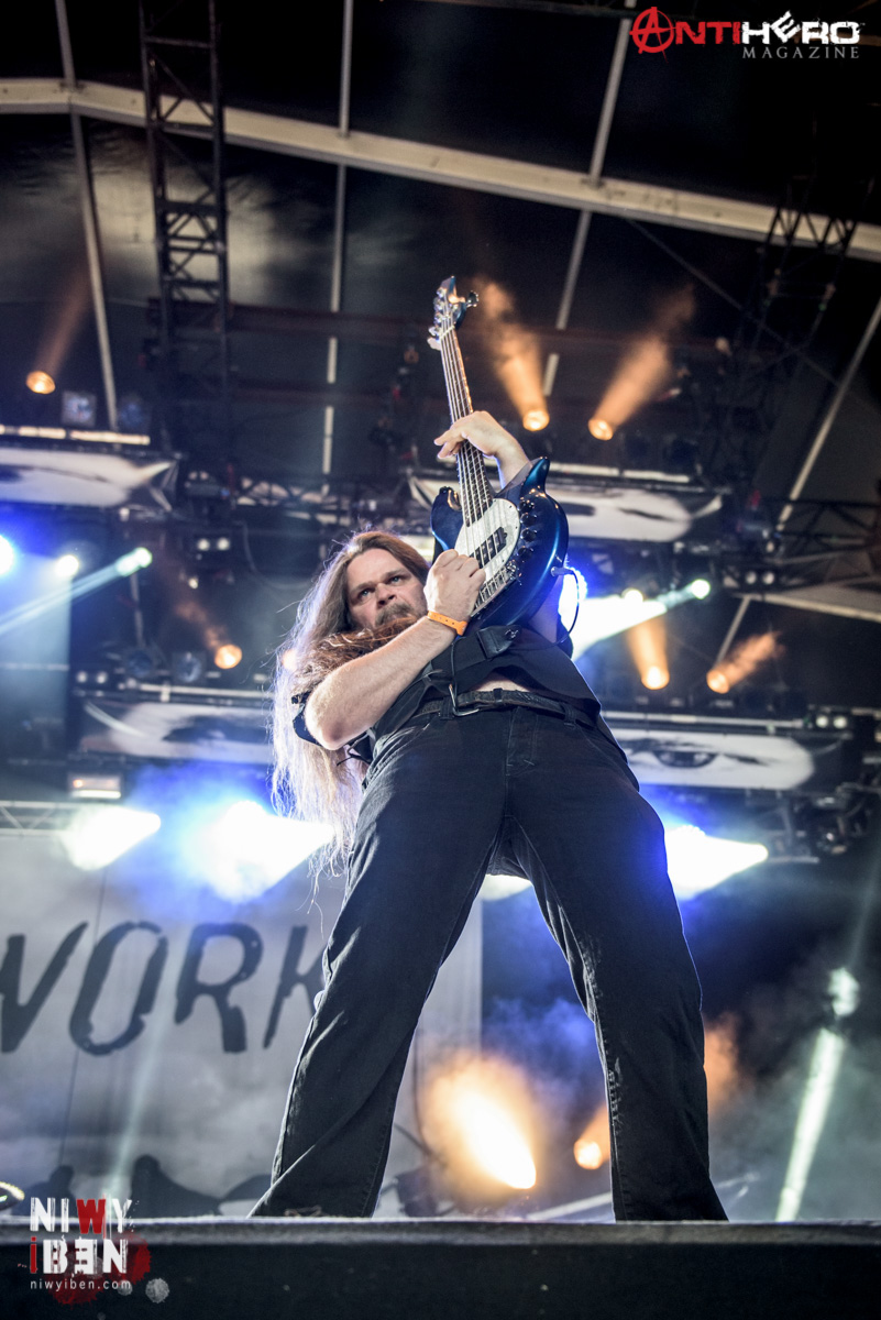 Evergrey are a band that I have long admired but to date had not previously seen in a live capacity. They were one of the first bands that I had added to my must-see list at the festival after I had decided to attend. Opening with “Leave It Behind Us” from their Glorious Collusion release. Very apparent from the first song that I was not standing alone in my admiration for the Swedish band, with many band T-shirts in evidence in all directions. From the past to the present and “Passing Through” from their latest album was up next. Huge choruses enhanced by keyboards as singer/guitarist Tom S. Englund poured his heart and soul into a very passionate stage performance. “Distance” quickly followed, again another track from latest studio offering The Storm Within, albeit enhanced with choral backing vocals. For all their melodies, the dual guitars were given sufficient space to soar and fly but also punch brutality. Evergrey’s set was a great combination of old and new in alteration, which had been effectively constructed in a seamless flow. Forty minutes appeared to fly by in a passing moment. They certainly could have deserved a much longer set, but it also had the effect of making me personally vow to catch their next set of headlining UK dates. Concluding with the slightly Queensrÿche sounding “King of Errors”, my verdict was “wow and incredible”. Great band, not particularly well known in the UK, who deserve to be massive.