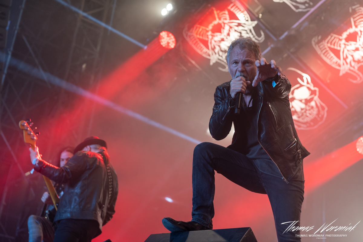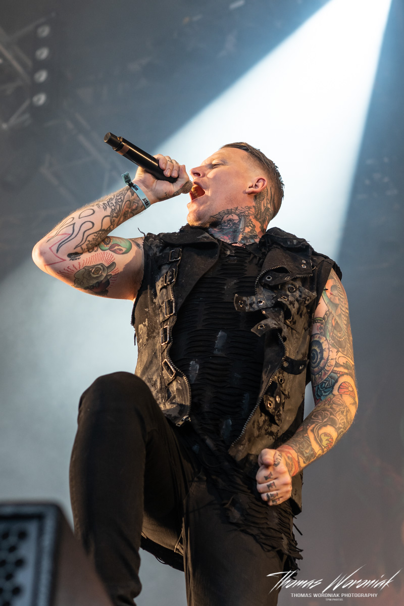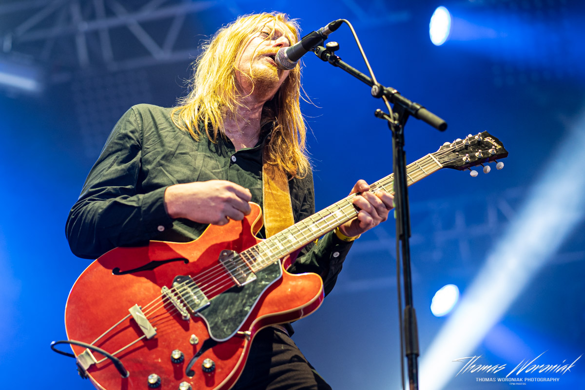 Early in the day, I enjoyed a great solo set from Richie Kotzen who decided to focus primarily on his recent solo album release. Unfortunately, without explanation one of the bands I was particularly looking forward to seeing – Rival Sons – didn’t show up. Their place on the main stage was taken by German industrialists Eisbrecher – another new band new to my ears. They attracted a massive audience to their set leading me to draw the conclusion that they were clearly “in the know” when it came to the change in billing.