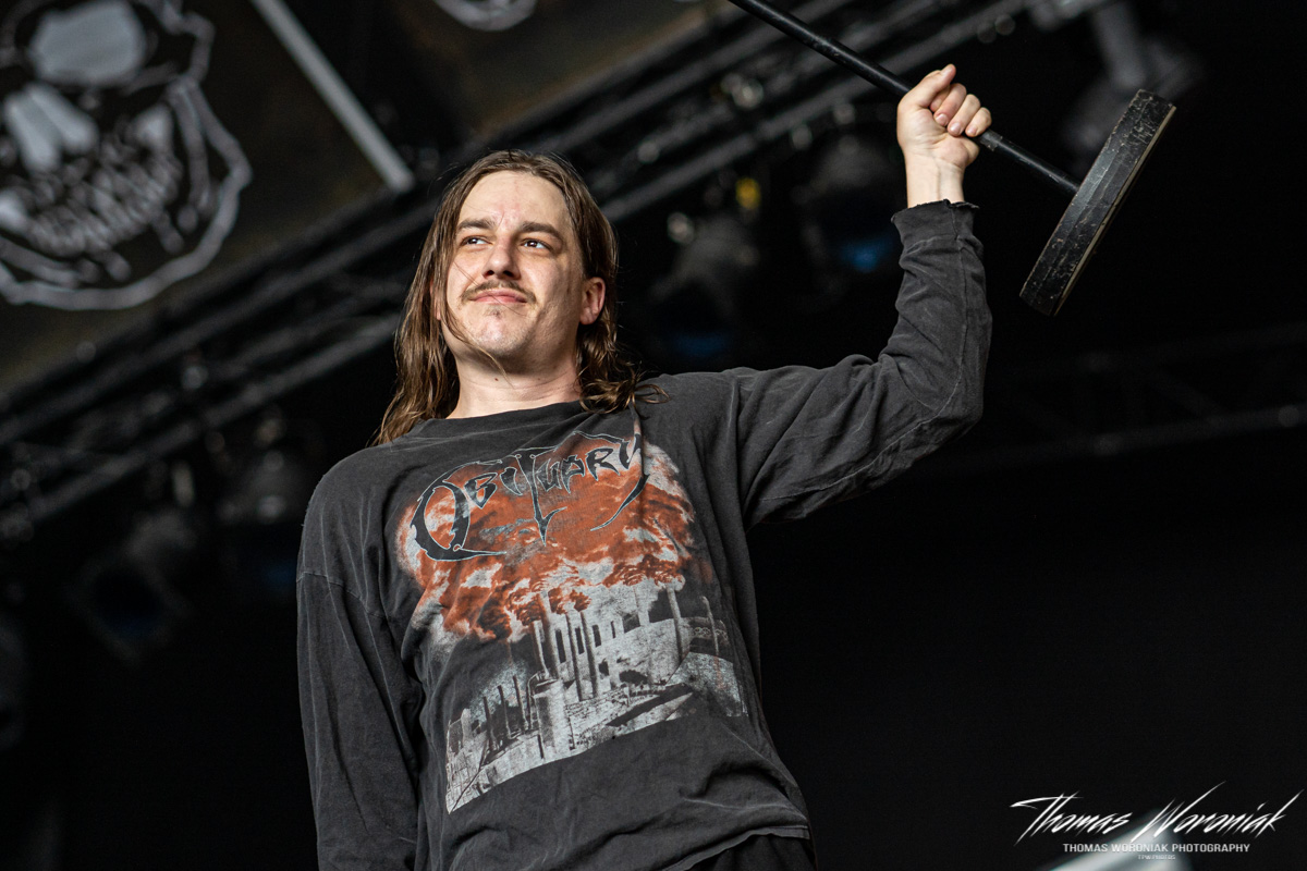 The final day was very top-heavy with eighties thrash legends – Anthrax, Testament, Death Angel, and Slayer. I was all too familiar with but in a similar vein and a new introduction to me personally was the early morning set of Municipal Waste, which had all circle pits and walls of death going on while I munched my breakfast baguette.