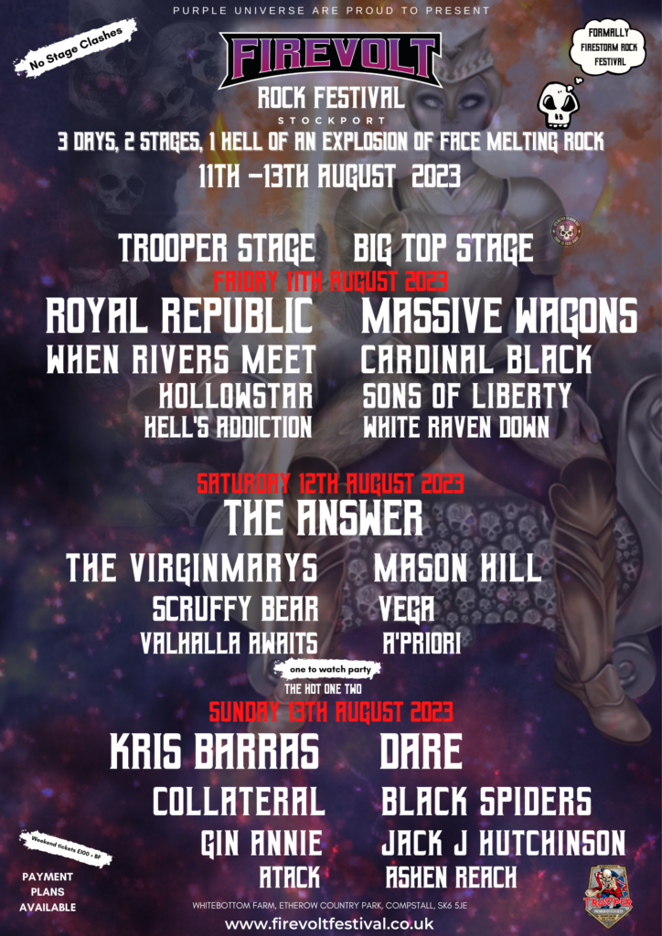Firevolt Rock Festival, formally known as Firestorm (Manchester) Rock Festival are proud to announce in association with LEAF PROMOTIONS and sponsored by TROOPER their BOTB competition giving new & emerging rock bands the opportunity to play the festival on either the Friday or Saturday (11th & 12th August 2023).