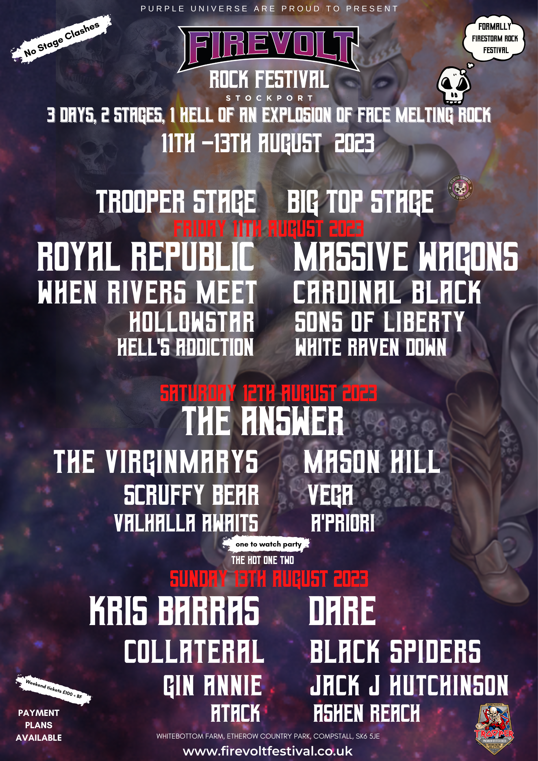 The collaboration between Firevolt Rock Festival & Robinsons Brewery will see the re-naming of the BARN STAGE to the TROOPER STAGE and will run until the end of the 2024 festival with a first option to continue beyond that.