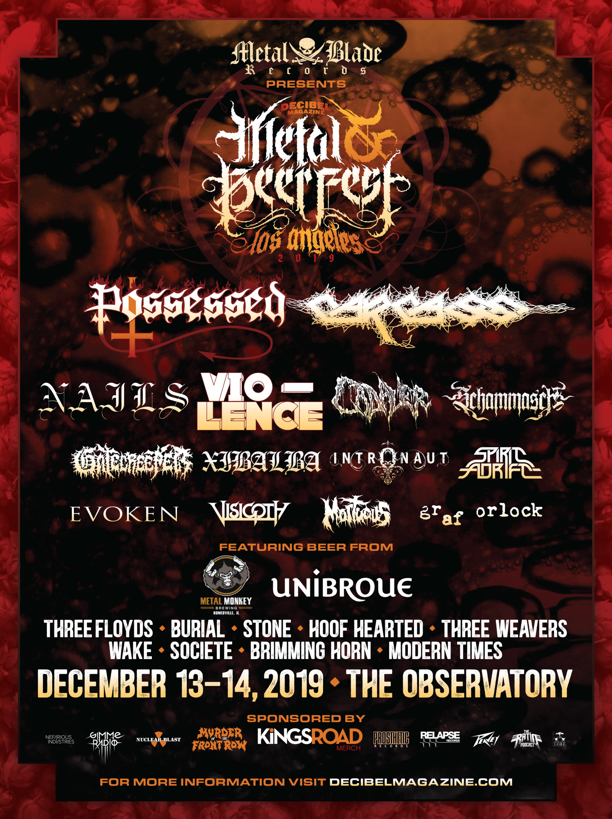 Get ready to swill on command on Friday and Saturday, December 13-14, 2019, as Decibel, North America’s only monthly metal magazine, brings the loudest, heaviest, most extreme craft beer festival to the Observatory in Santa Ana, California!