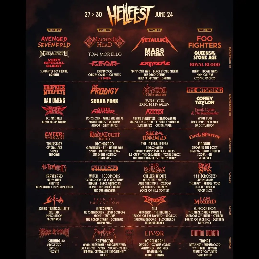 Prepare to be engulfed by the sonic fury of legendary headliners such as Avenged Sevenfold, Machine Head, Metallica, and Foo Fighters, who will reign supreme atop the festival’s hallowed stages, delivering performances that will shake the very foundations of Clisson. From bone-crushing riffs to thunderous rhythms, these titans of metal will leave no doubt as to why they’re revered as the masters of their craft.