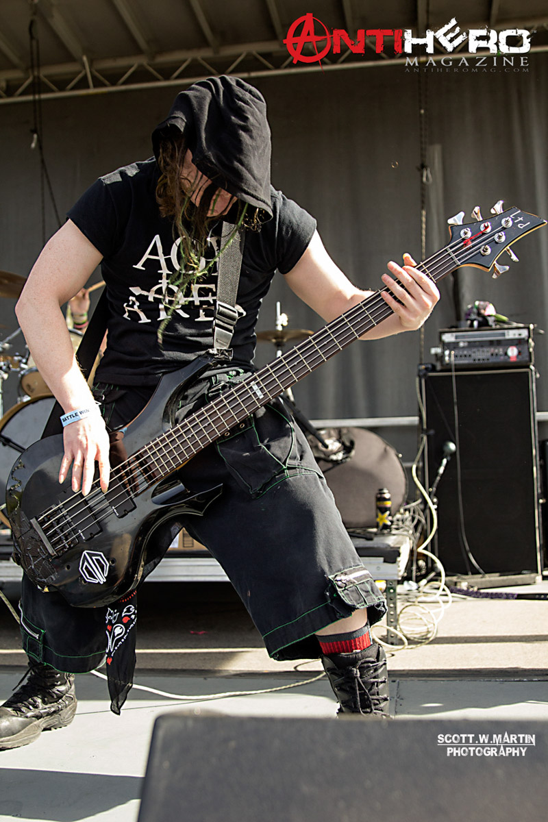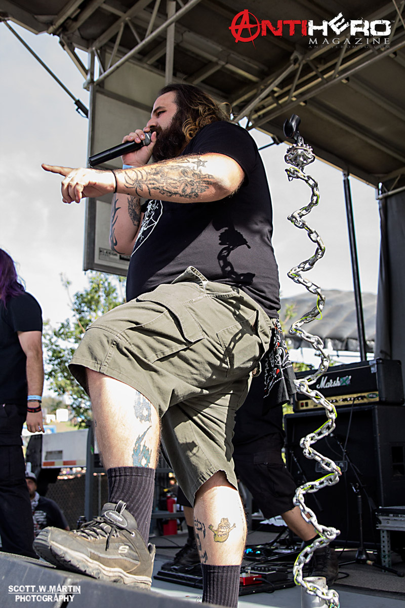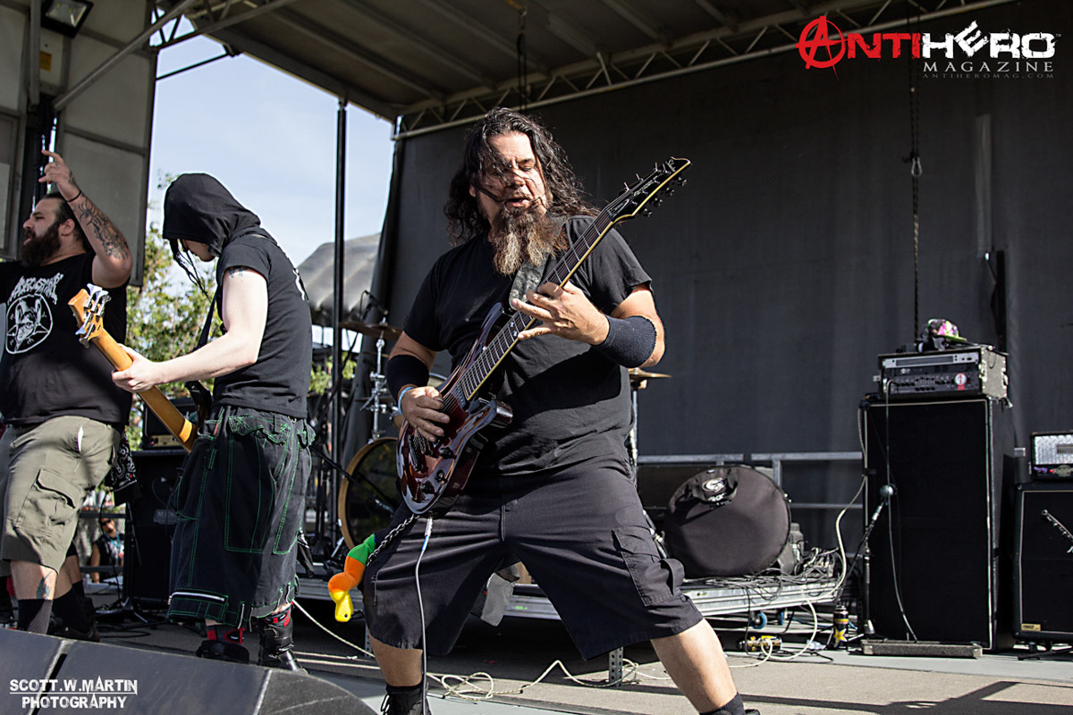 Out of Redwood City, California, melodic death metal band SHORT FUSE – featuring Myke “Death” DiBattista, Scott “Beef” Chavez, Tony X, Dan “Zaffle” Hartnett, and MeowTin Boynton – performed on the HEADBANG FOR THE HIGHWAY stage on Saturday, October 24, 2015 at Knotfest 2015 in San Bernardino, California at the San Manuel Amphitheater. [separator style=”space” /]