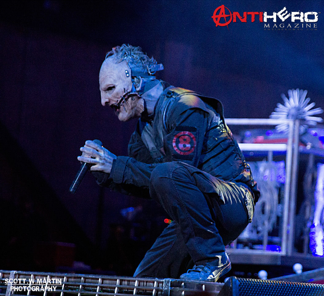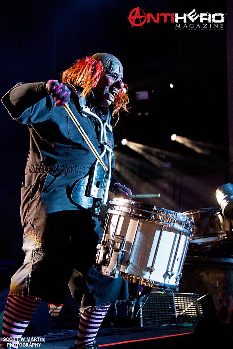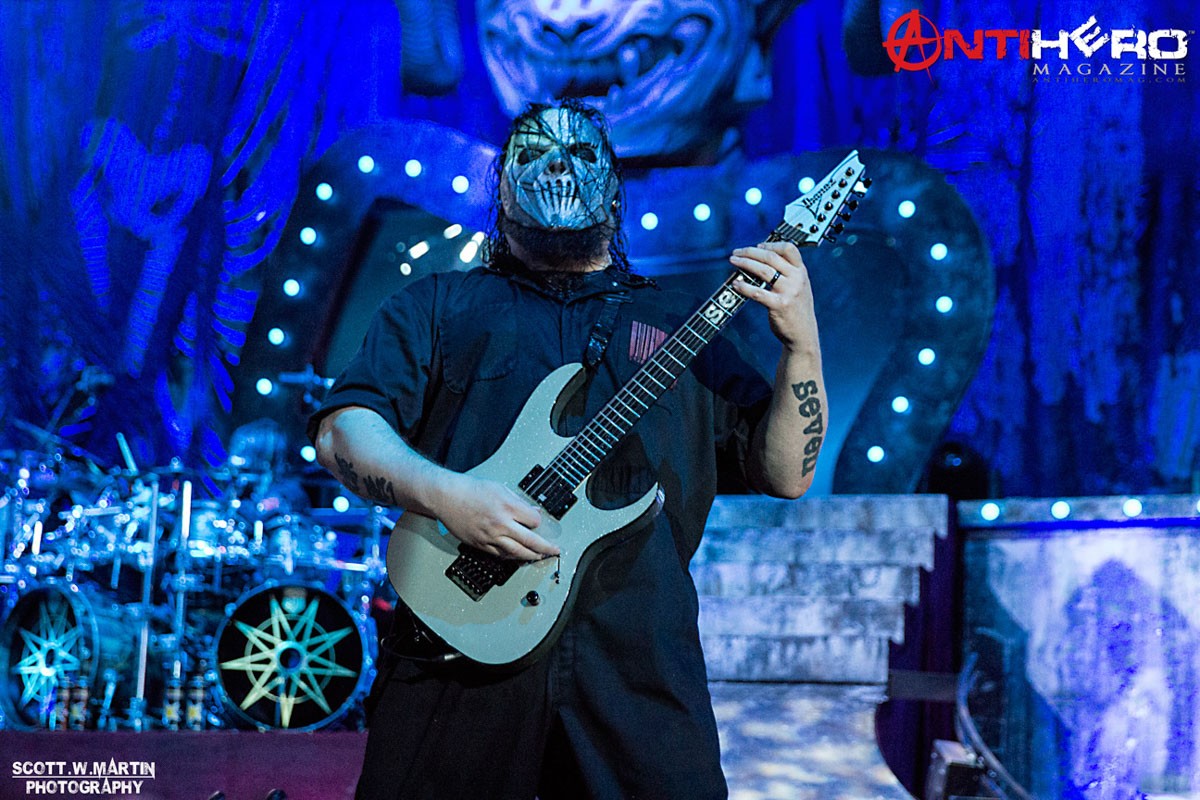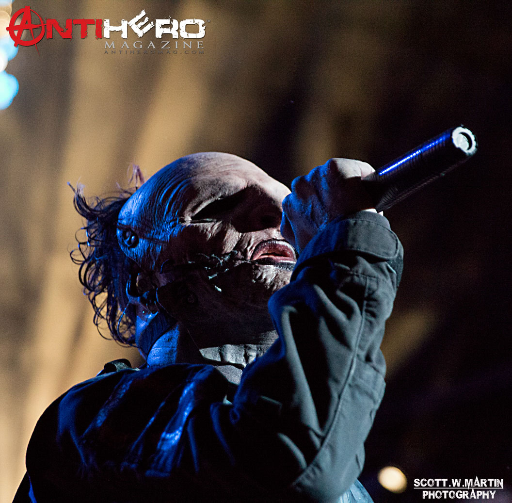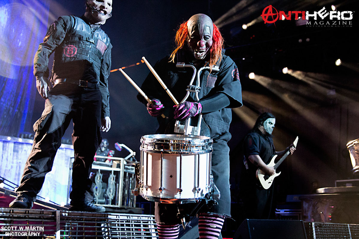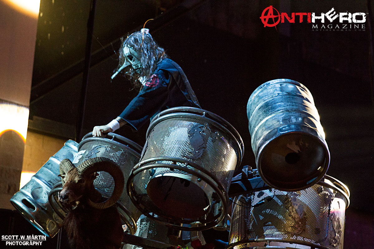 SLIPKNOT – featuring Corey Taylor, Mick Thomson, Jim Root, Craig Jones, Sid Wilson, Shawn Crahan, Chris Fehn, Alessandro Venturella, and Jay Weinberg – performed on Sunday, October 25, 2015 at Knotfest 2015 in San Bernardino, California at the San Manuel Amphitheater. [separator style=”space” /]