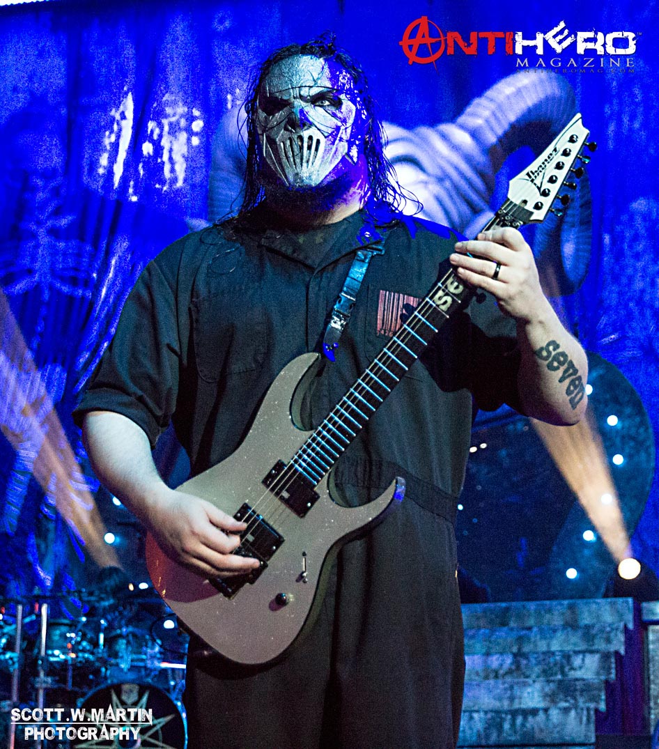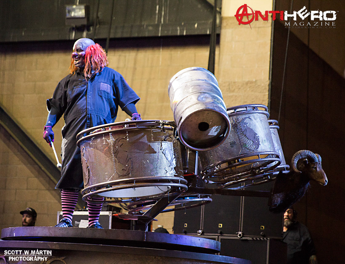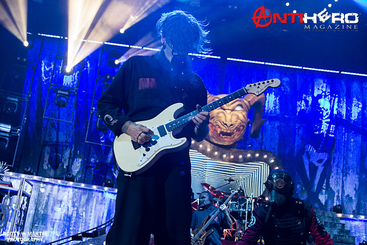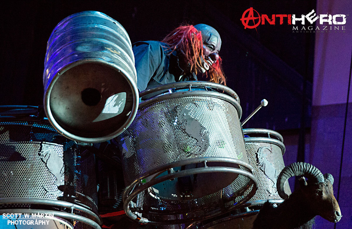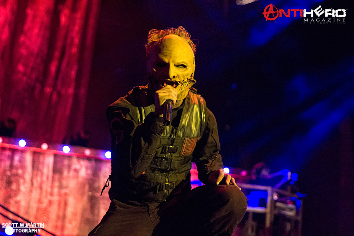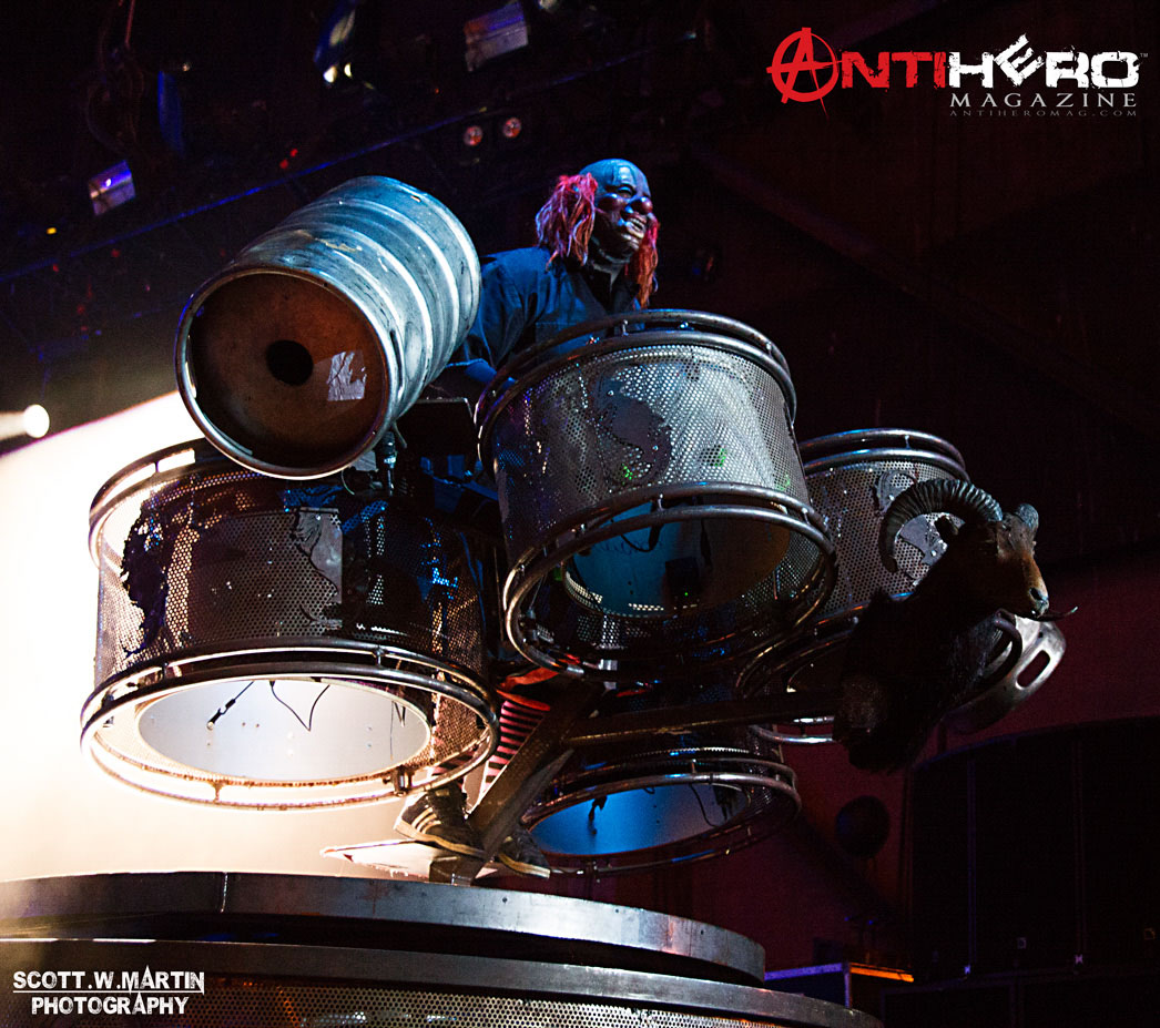 SLIPKNOT – featuring Corey Taylor, Mick Thomson, Jim Root, Craig Jones, Sid Wilson, Shawn Crahan, Chris Fehn, Alessandro Venturella, and Jay Weinberg – performed on Sunday, October 25, 2015 at Knotfest 2015 in San Bernardino, California at the San Manuel Amphitheater. [separator style=”space” /]