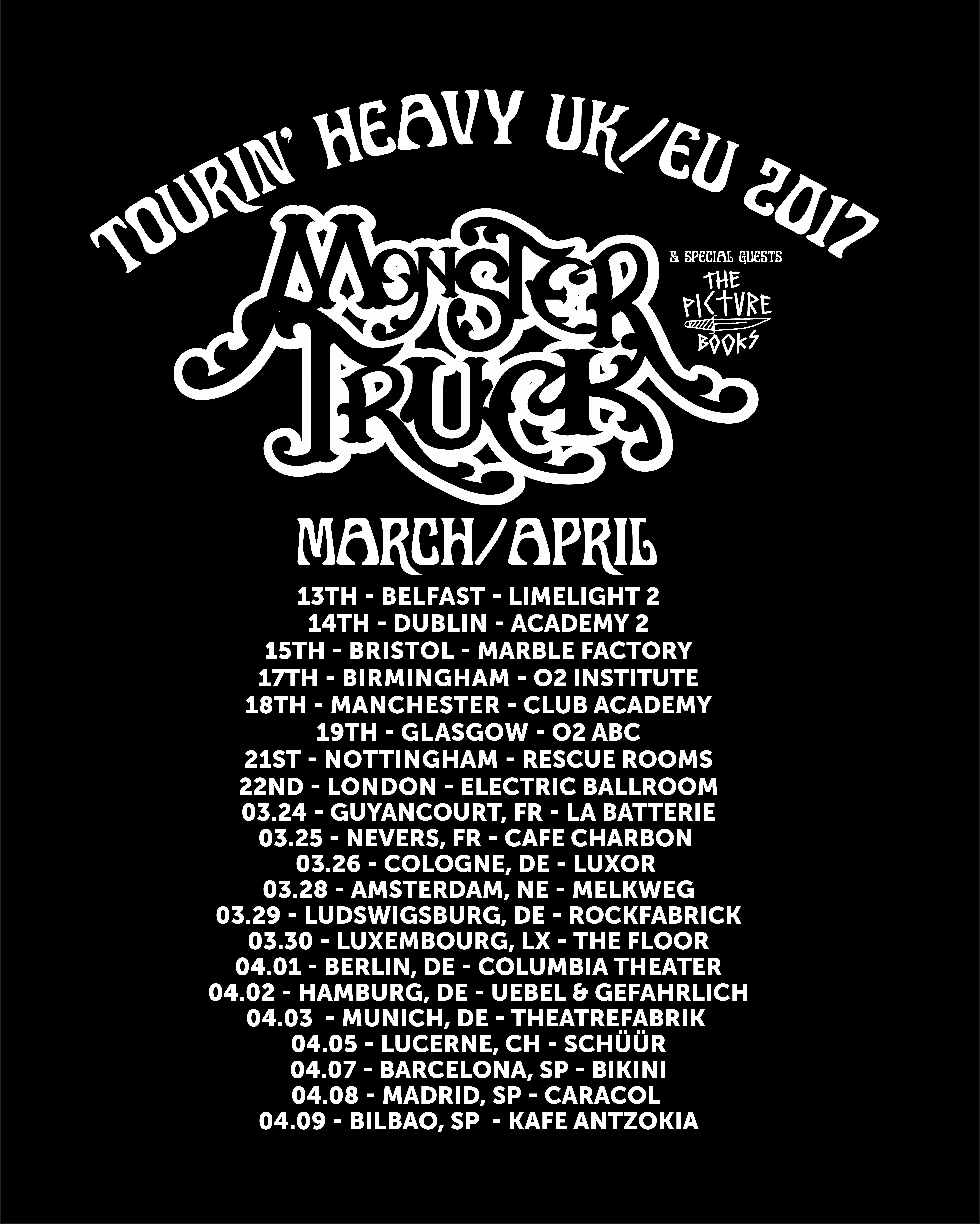 Following on from their storming European Arena tour with Nickelback and now in the middle of their Billy Talent Arena shows, Canadian Juggernaut rockers MONSTER TRUCK will be returning for a European headline tour calling at the UK, Ireland, France, Germany, The Netherlands, Luxembourg, Switzerland and Spain in March/April 2017.