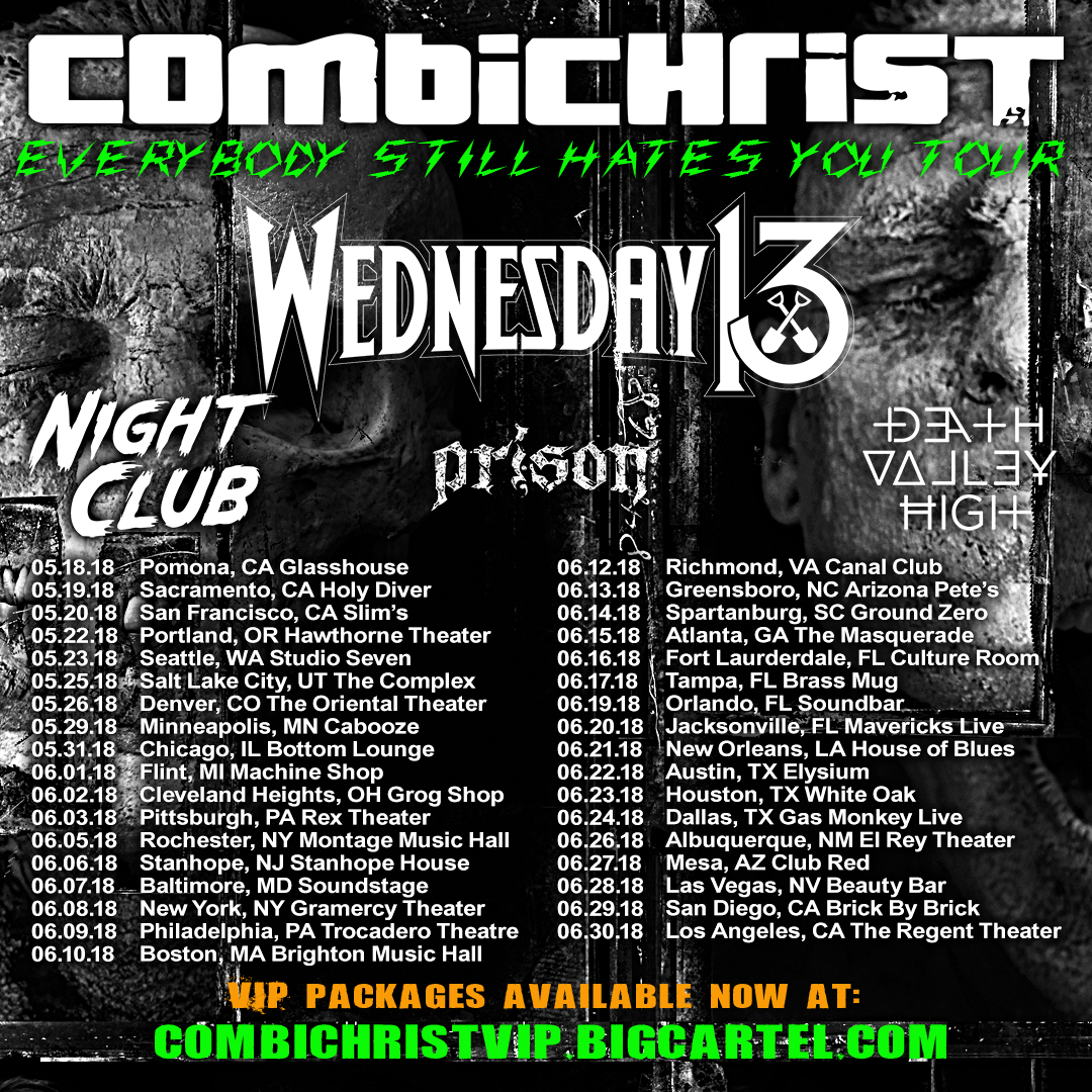 “We’re excited to get back on the road with our friends in Combichrist and play some songs from our upcoming album which is set for a Fall 2018 release. We’re releasing the first single, ‘Candy Coated Suicide,’ on May 18th in conjunction with the start of the tour.” – Night Club