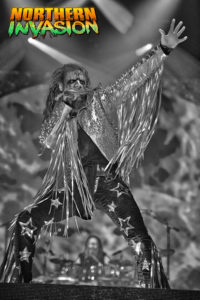 Northern InvasionThere are very few bands that can top the theatrics of Rob Zombie and his crew, and for good reason. There was smoke, and lights, and fire, psychedelic images during the entire set but my favorite was the giant metal dude phantom air humping during “Well, Everybody’s Fucking in a UFO.” Rob was uncharacteristically chatty with the crowd, which fed their hunger for everything Zombie. Piggy D and John 5 played their blackened hearts out, despite the chilly 50-degree weather. Zombie gave the crowd what they wanted that night, loud, raunchy, powerfully good music.