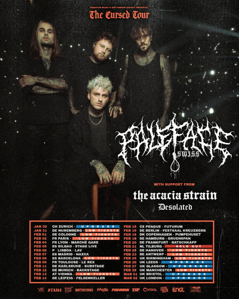 The release of “Love Burns” comes as Paleface Swiss prepare for their most ambitious touring schedule yet. Their European and UK headline tour kicks off on January 30th, 2025, in their hometown of Zurich, Switzerland, with support from The Acacia Strain and Desolated. Following 27 dates across Europe and the UK, the band will bring their monstrous sound to North America, beginning March 20th in Detroit, MI. Featuring Stick To Your Guns and Nasty, the 30-date US run will hit major cities including New York, Los Angeles, and Toronto.