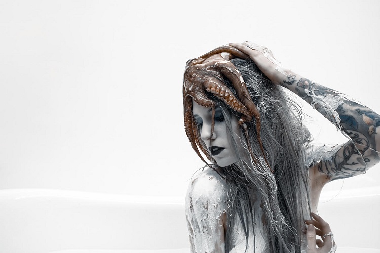 “The video began as a concept of vignettes with director Ron Thunderwood. I knew that I wanted to create something beautifully artistic and visually unsettling. We filmed the video over the course of four months due to quarantine restrictions, so we had the luxury of time to build on the characters. I really give my blood, insomnia, and tears to everything I do artistically and tend to think about the consequences later… but I knew I was committed when a frozen octopus from Seattle showed up at my front door…” – SAMMI DOLL