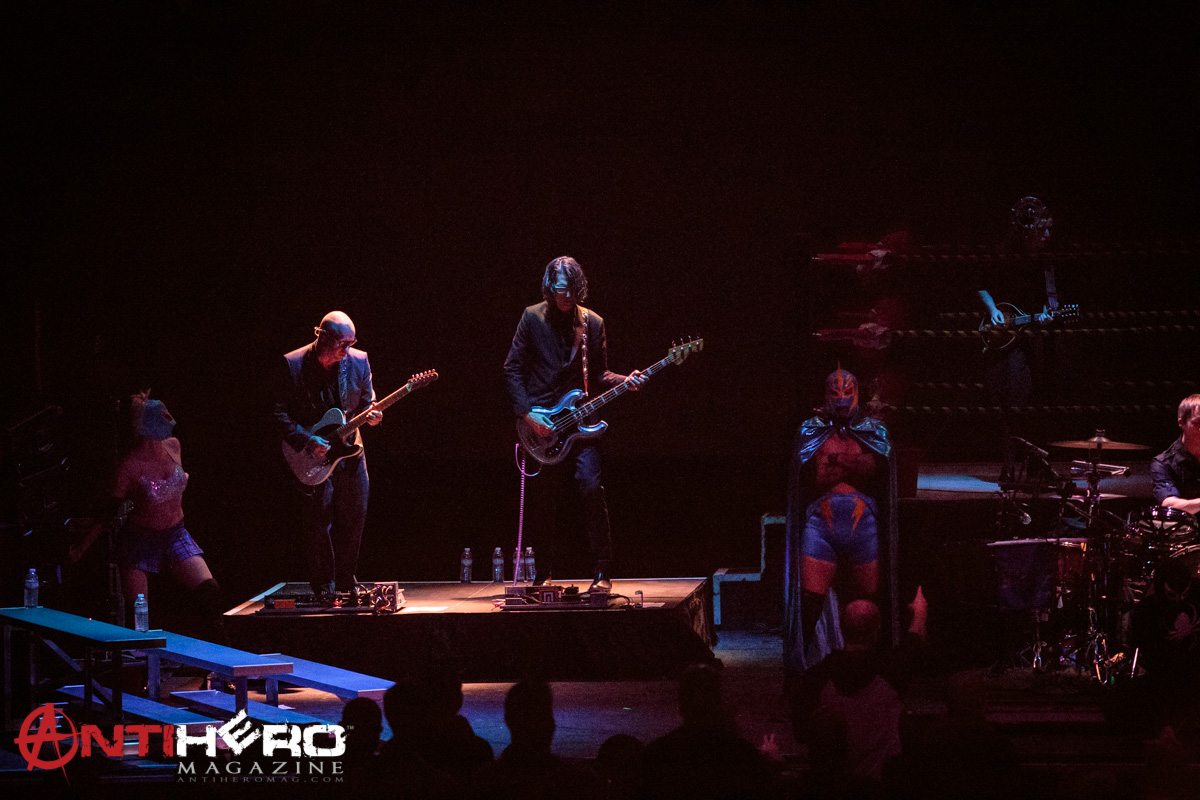 Uncle Ted may have put us in a “Stranglehold” but I can guarantee you he never put on a show like this. On November 22, 2015, Puscifer put on a show to the likes I have never witnessed. Opening for Puscifer – and I use the term “opening” loosely – was Luchafer. Luchafer can only be described as a Luchador wrestling match – yes, that’s right, I said a wrestling match. And for the avid fans that want to be right in the action you can upgrade to a VIP pass that will put you ring side for the match. The match consisted of mixed tag team action with a Luchador butler that would randomly bring in drinks and turn the ring into a Rave Party. The Señors and Señoritas put on a pretty good match for the fans only to be undone by the cocktail delivering butler who ended up whooping everyone. It certainly was a change of pace for an opening act.
