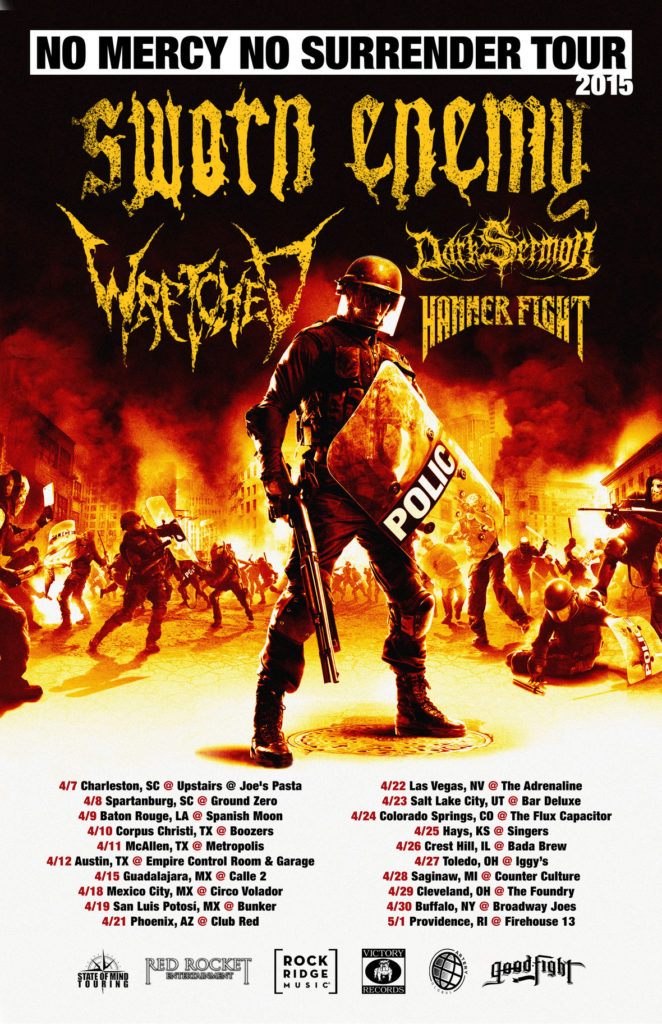 “Looking forward to hitting the road in April with Wretched, Dark Sermon, & Hammer Fight. Gonna be good times so everyone make sure you get your asses out to the shows.” – Sal LoCoco (Sworn Enemy)