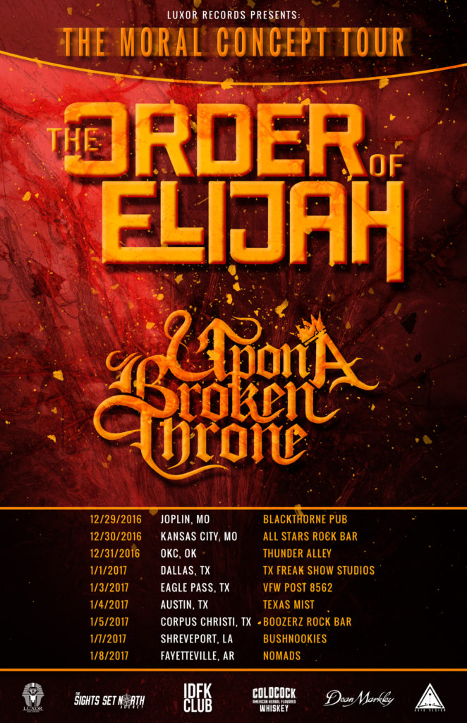 Luxor Records’ metal outfits The Order Of Elijah and Upon A Broken Throne have announced their forthcoming winter tour. The nine day tour will start on December 29th in Joplin, MO and will run south ending in Fayetteville, AR on January 8th.