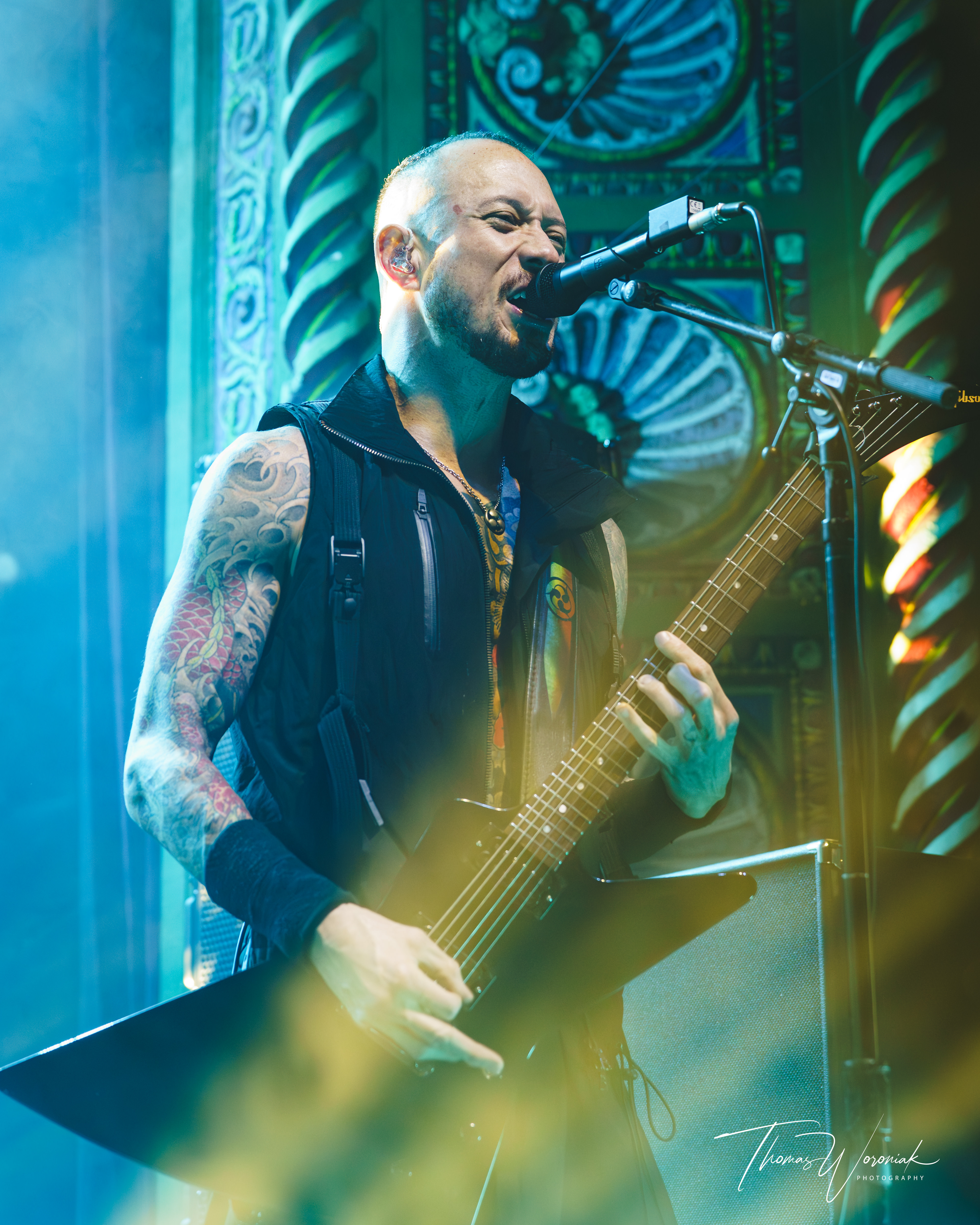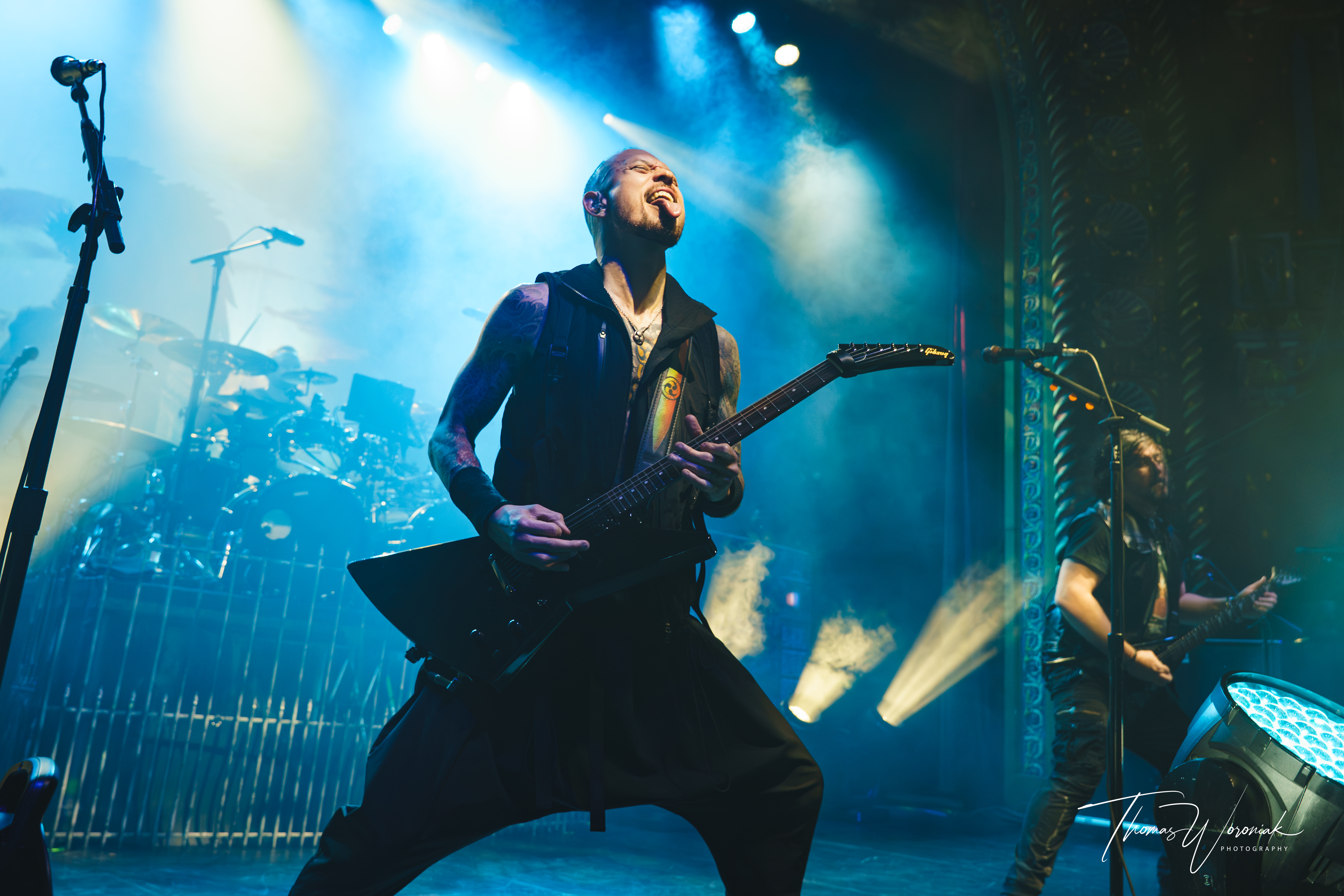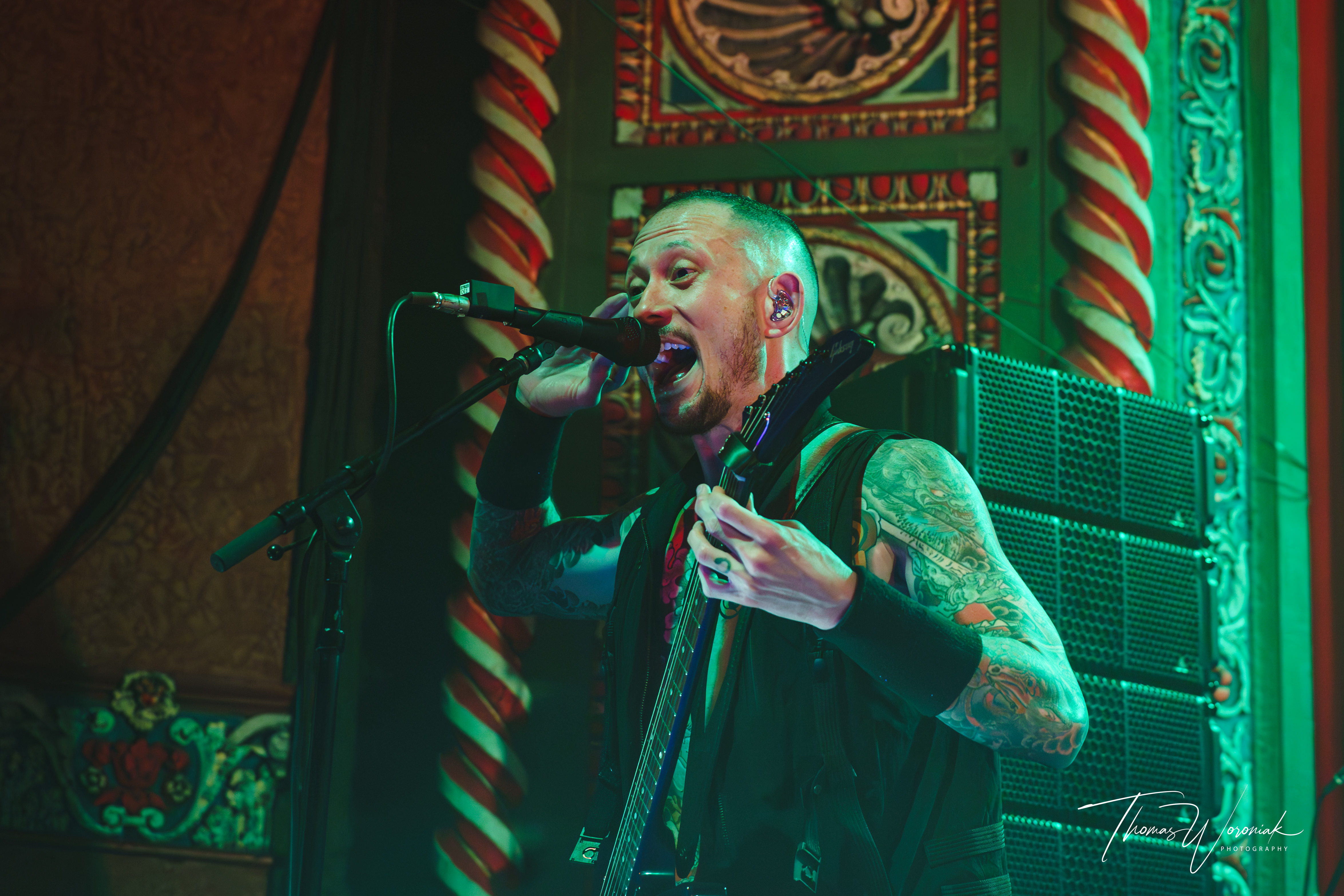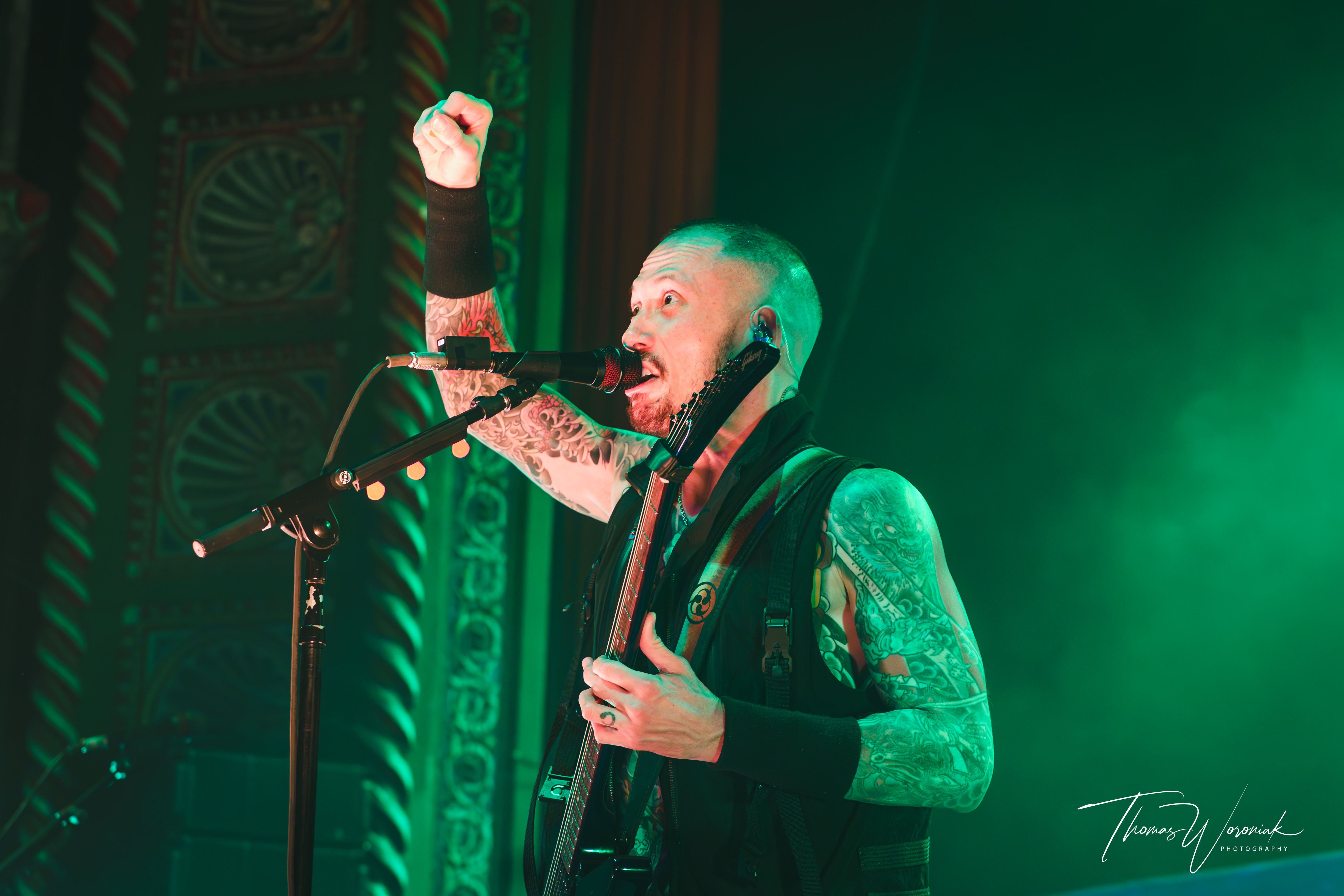 By the time Trivium took the stage, the Uptown Theater was packed shoulder-to-shoulder, energy at a peak. Opening with “In Waves,” the band instantly ignited the room, setting a high-octane pace that rarely dipped. Early classics “Like Light to the Flies” and “Strife” reinforced Trivium’s ability to bridge generations, uniting longtime fans and newer listeners under the same thunderous choruses.
