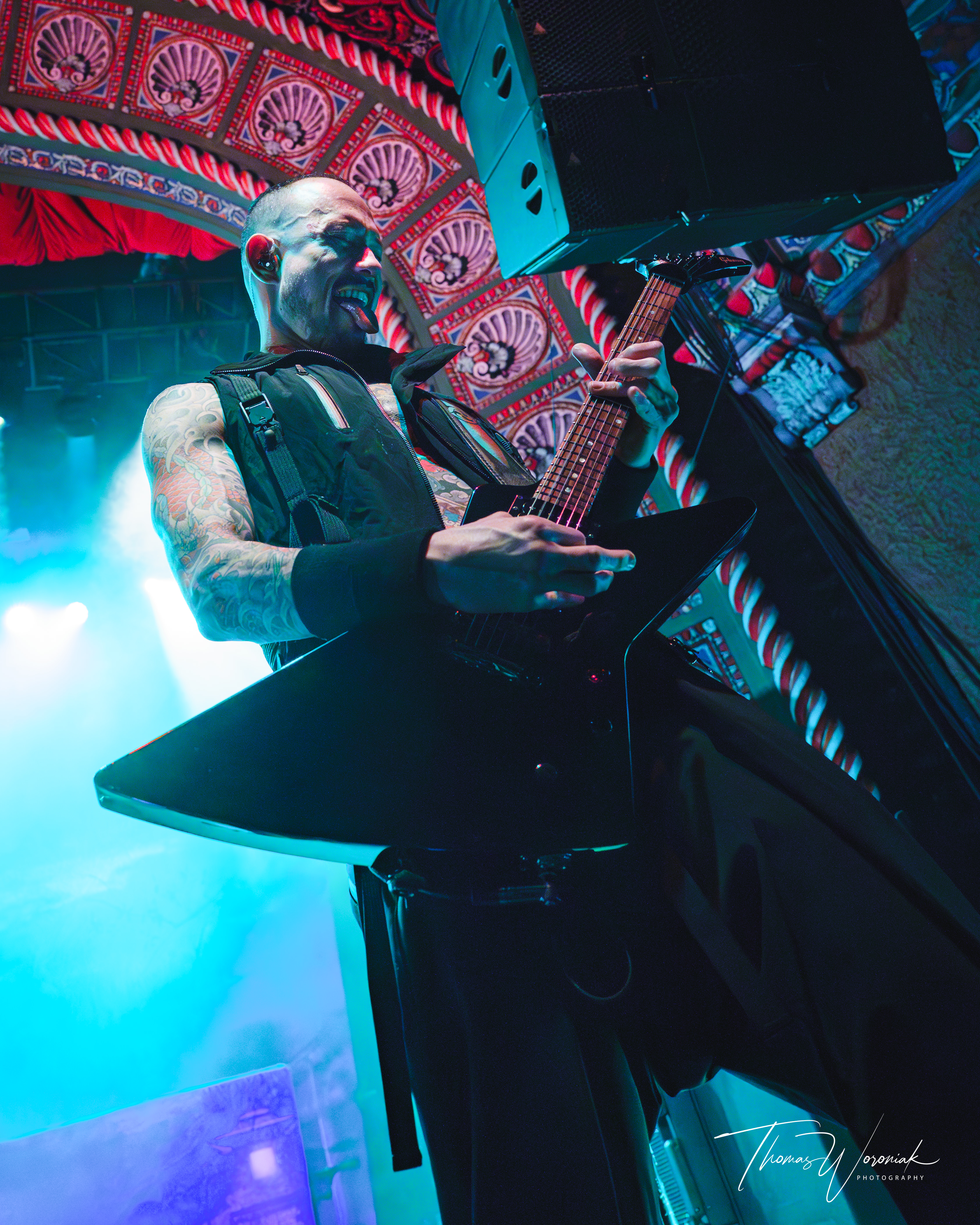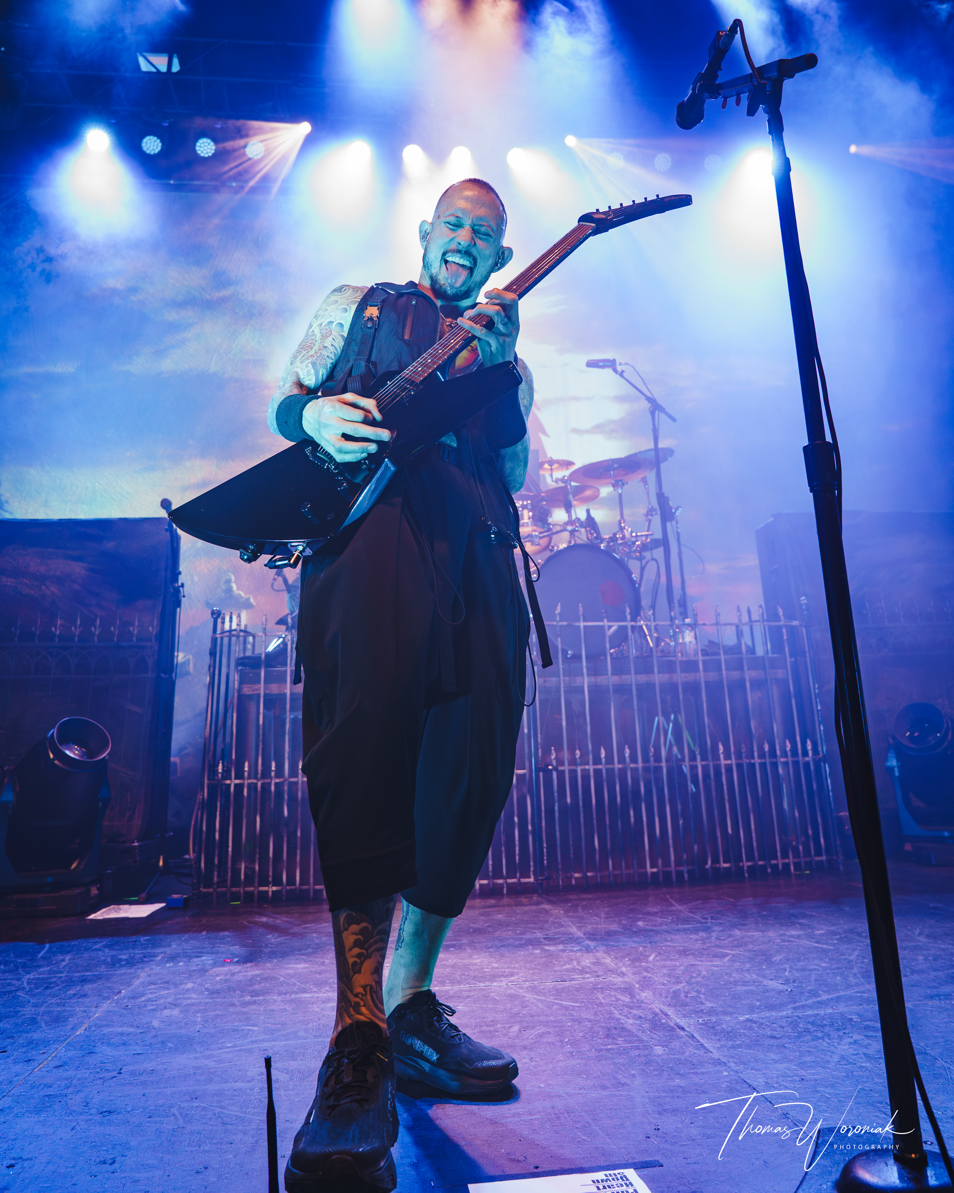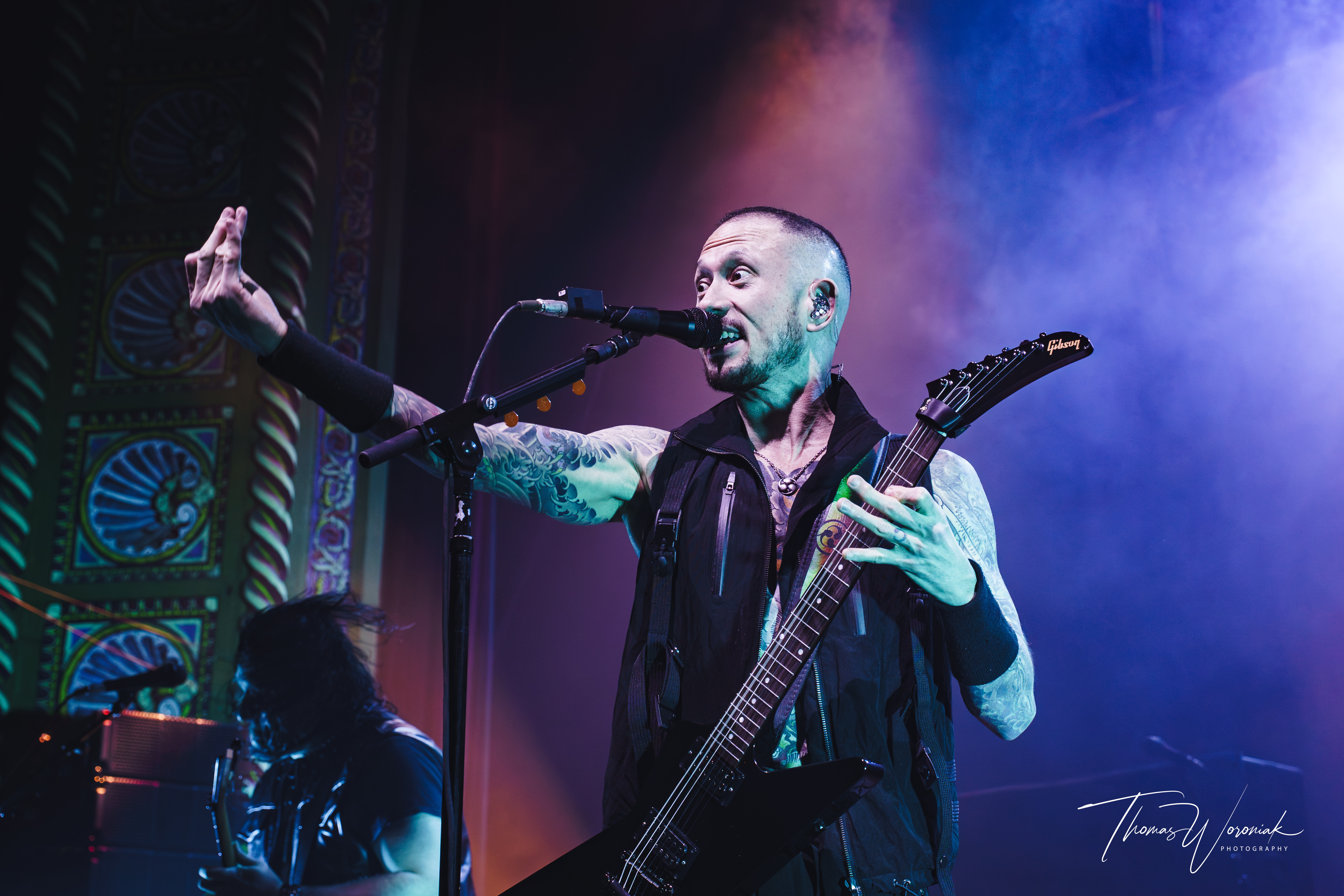 By the time Trivium took the stage, the Uptown Theater was packed shoulder-to-shoulder, energy at a peak. Opening with “In Waves,” the band instantly ignited the room, setting a high-octane pace that rarely dipped. Early classics “Like Light to the Flies” and “Strife” reinforced Trivium’s ability to bridge generations, uniting longtime fans and newer listeners under the same thunderous choruses.