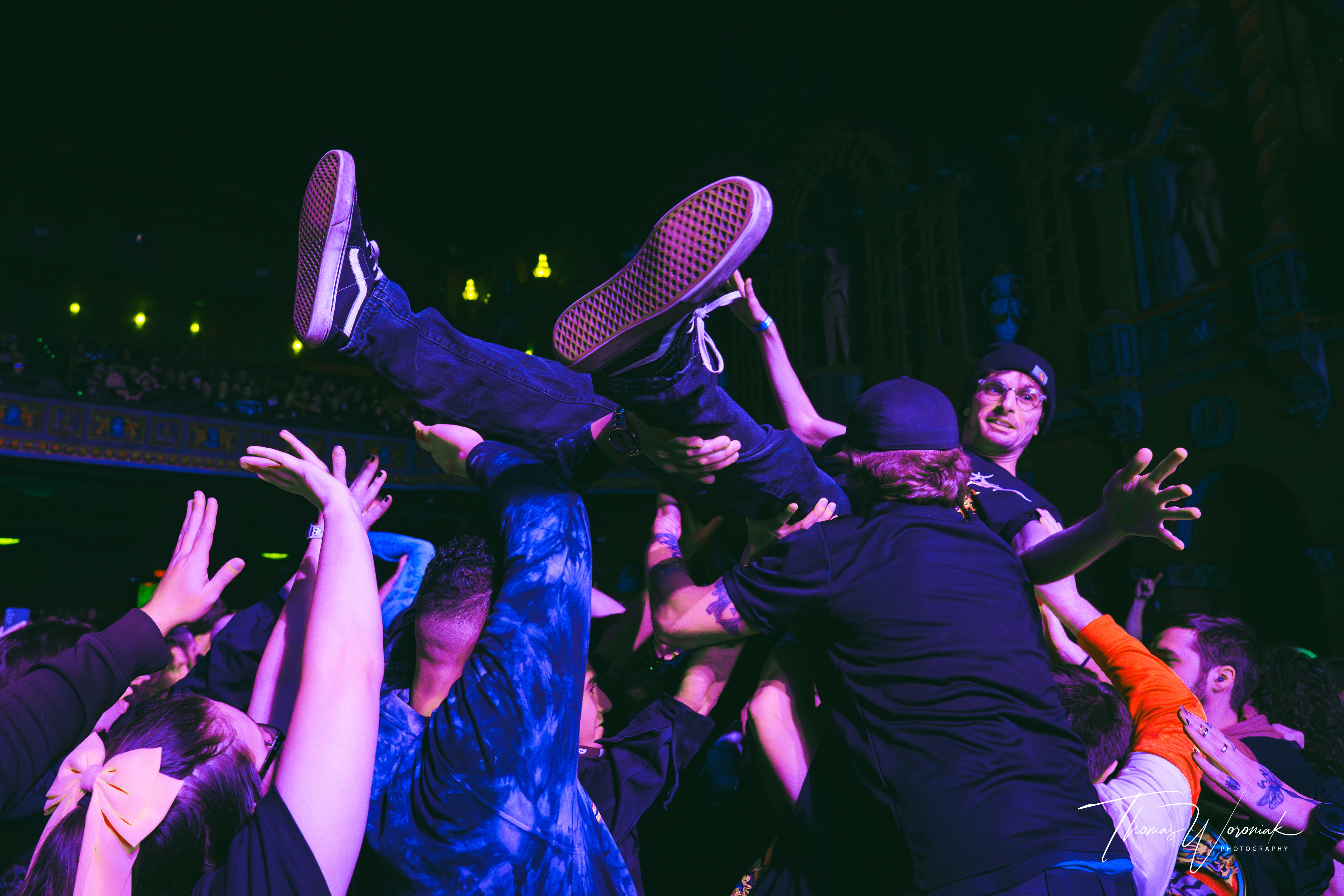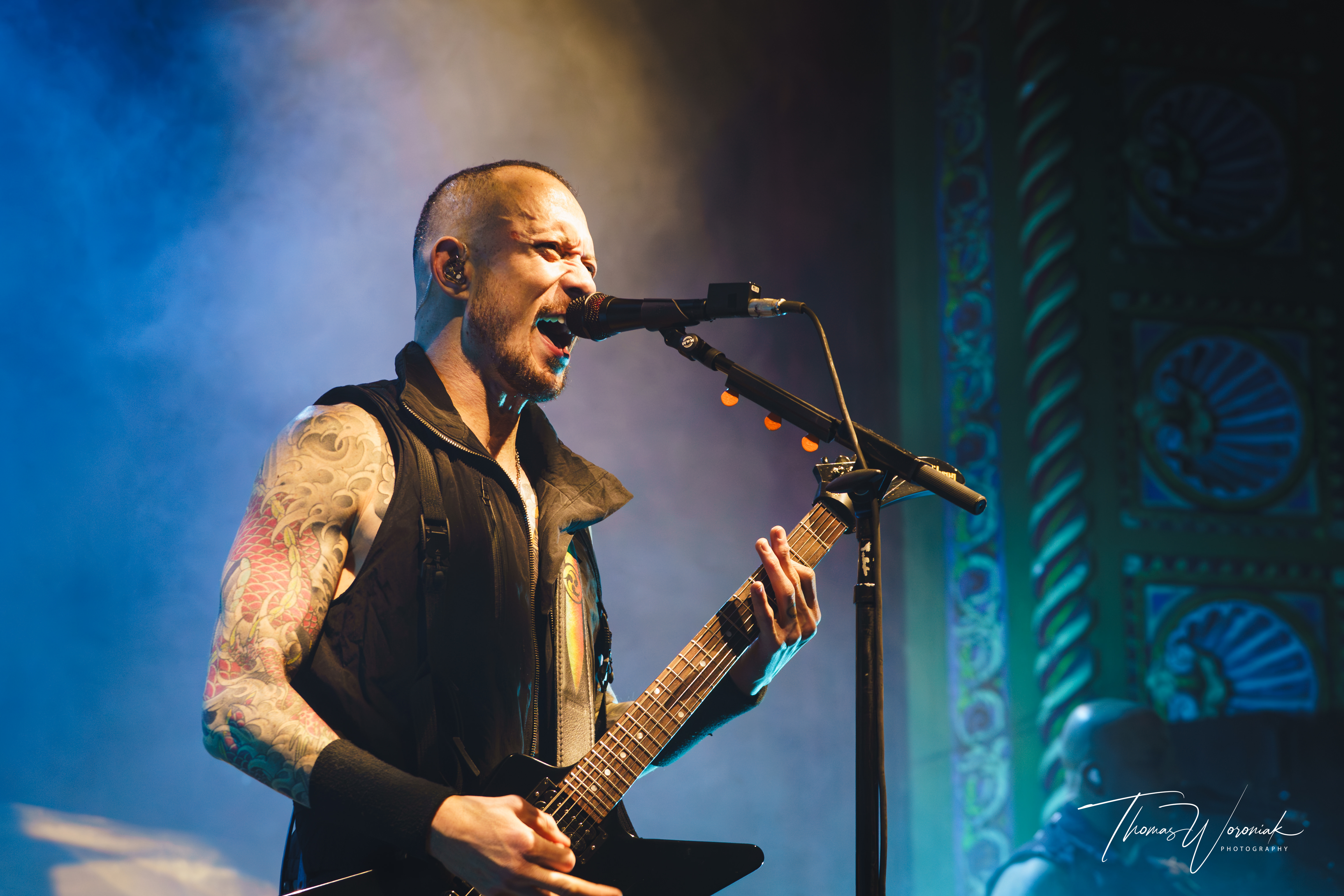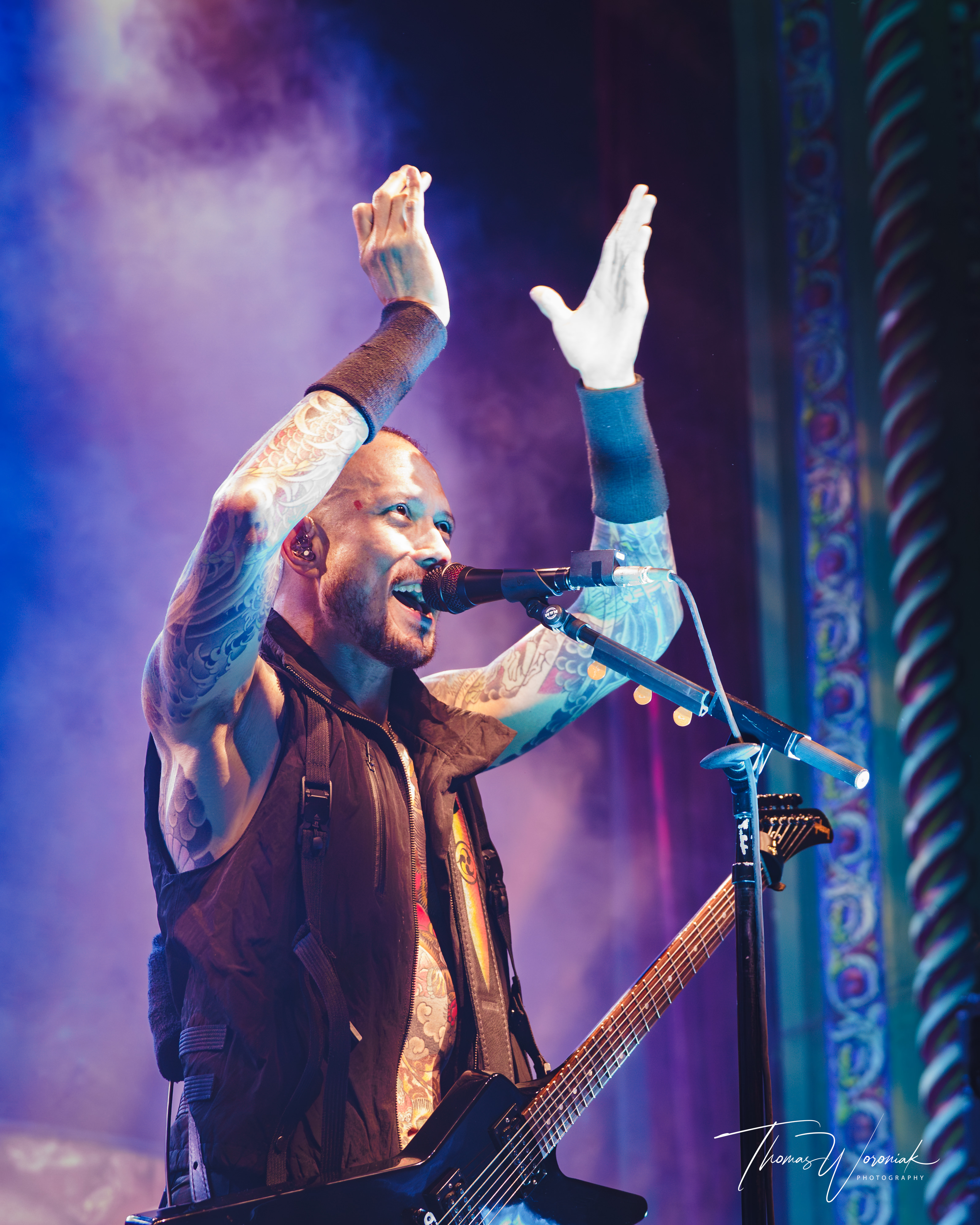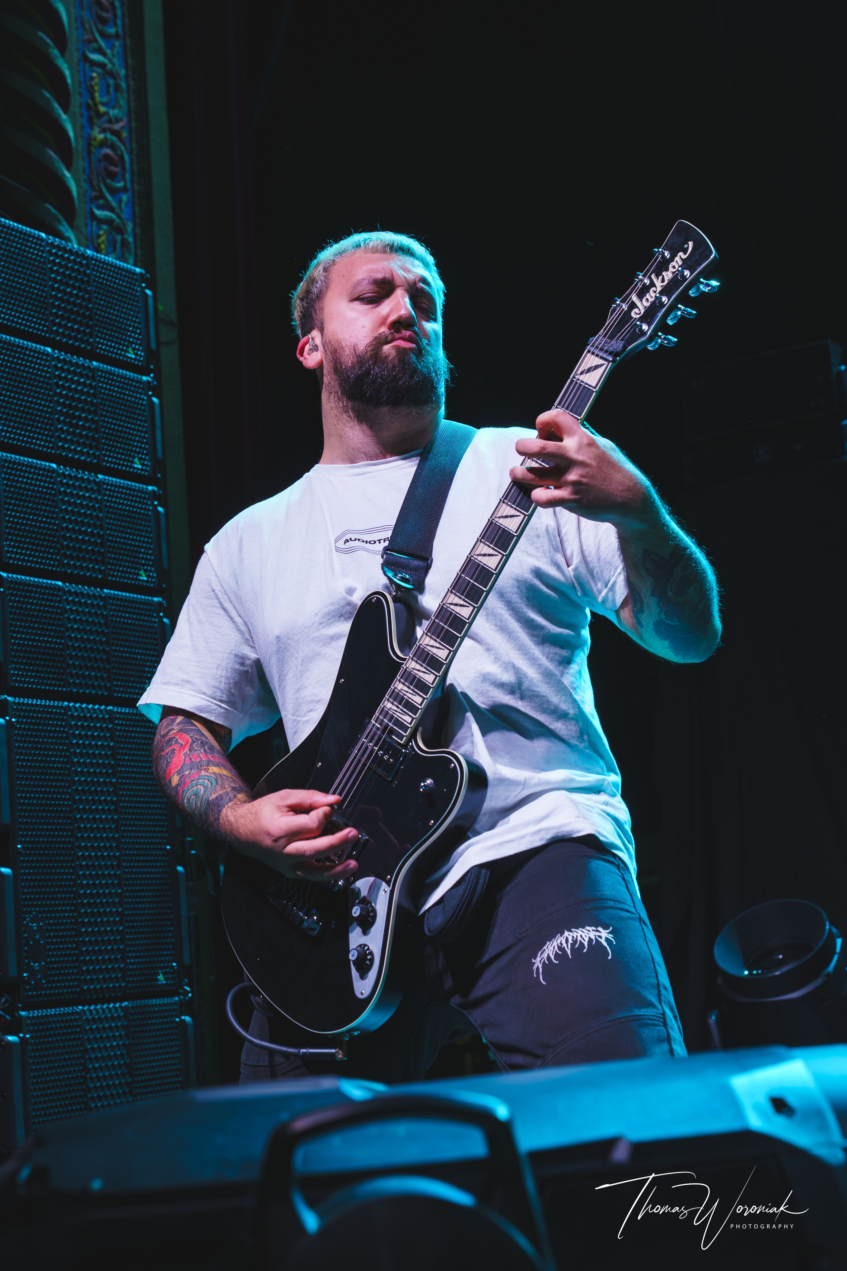 By the time Trivium took the stage, the Uptown Theater was packed shoulder-to-shoulder, energy at a peak. Opening with “In Waves,” the band instantly ignited the room, setting a high-octane pace that rarely dipped. Early classics “Like Light to the Flies” and “Strife” reinforced Trivium’s ability to bridge generations, uniting longtime fans and newer listeners under the same thunderous choruses.