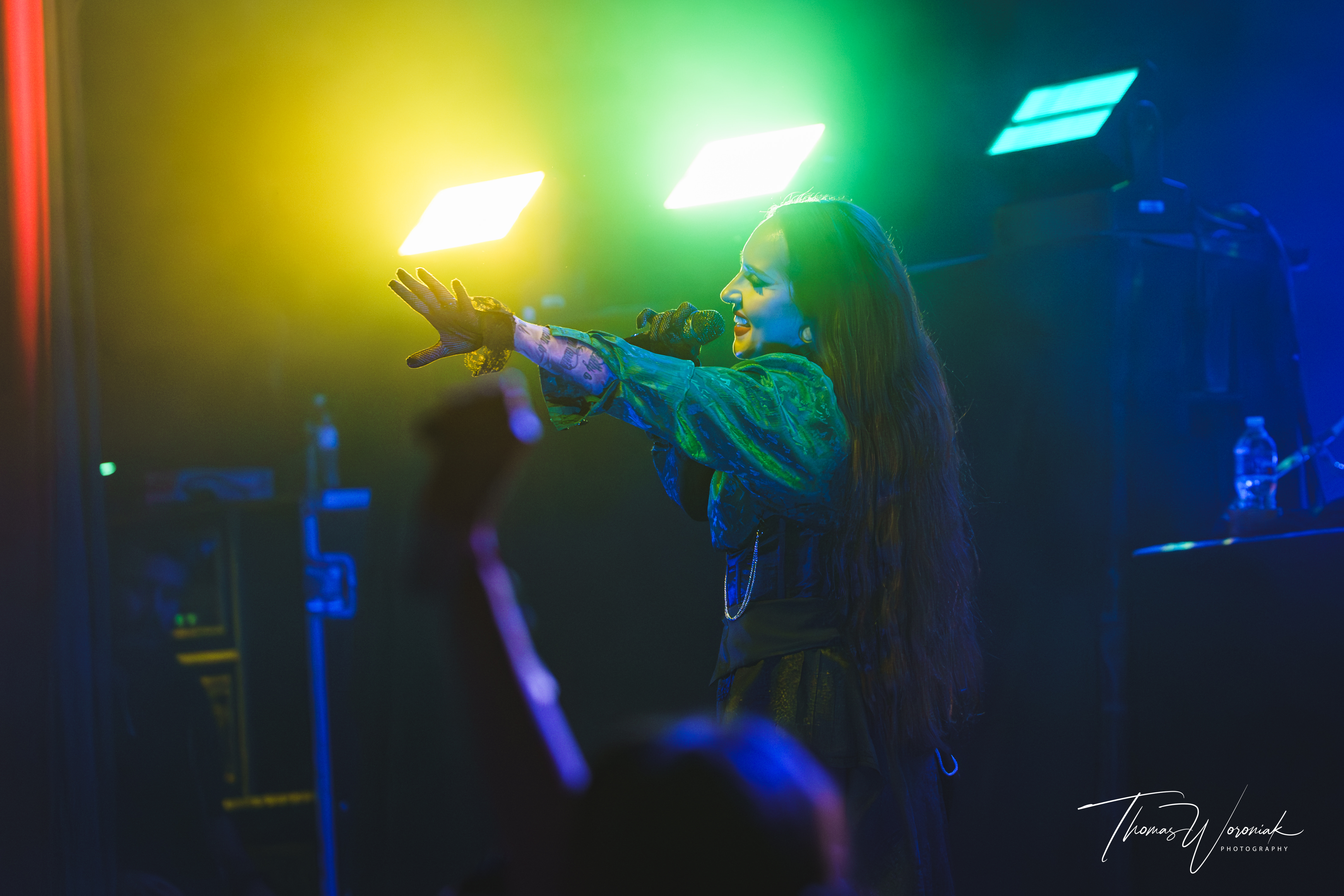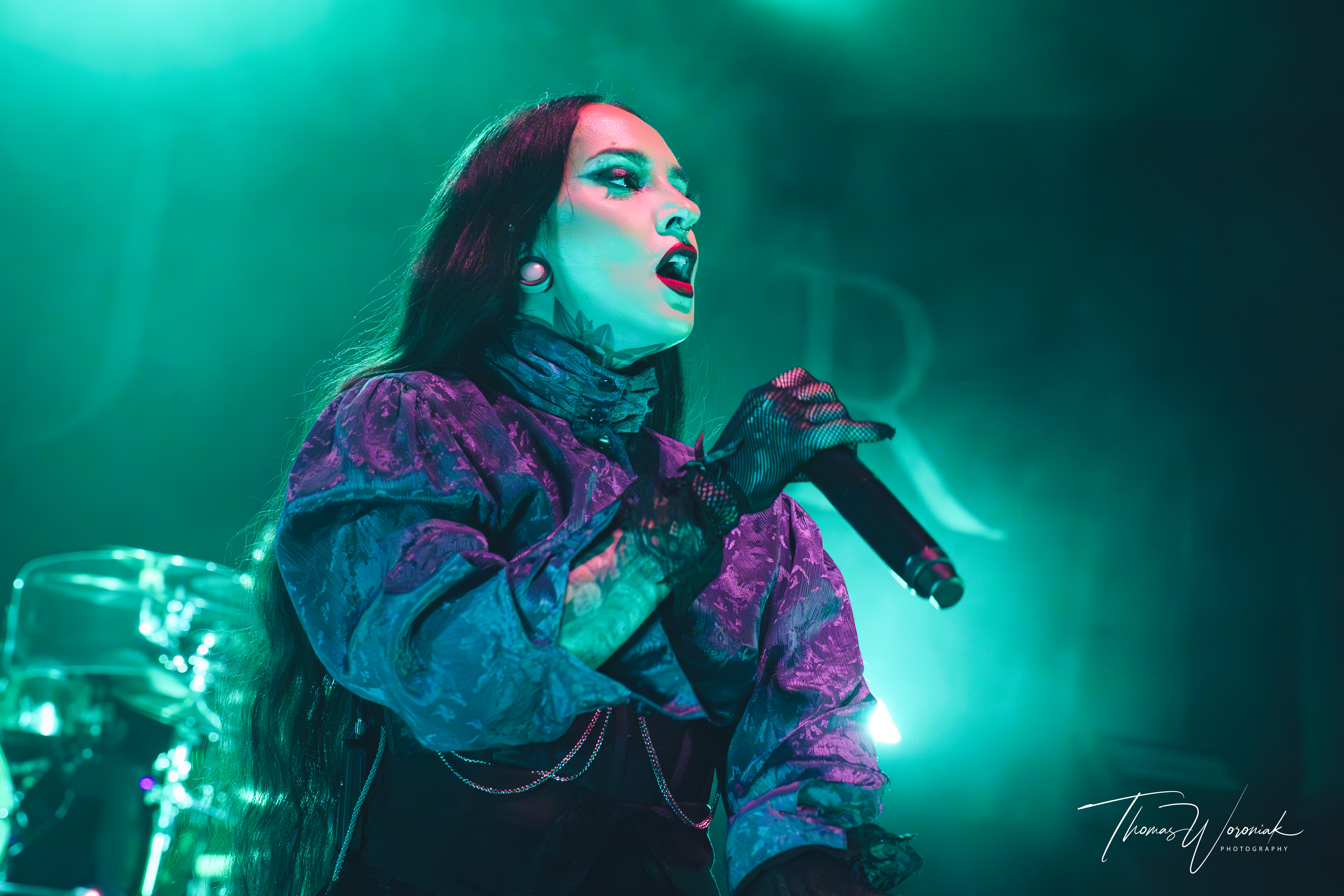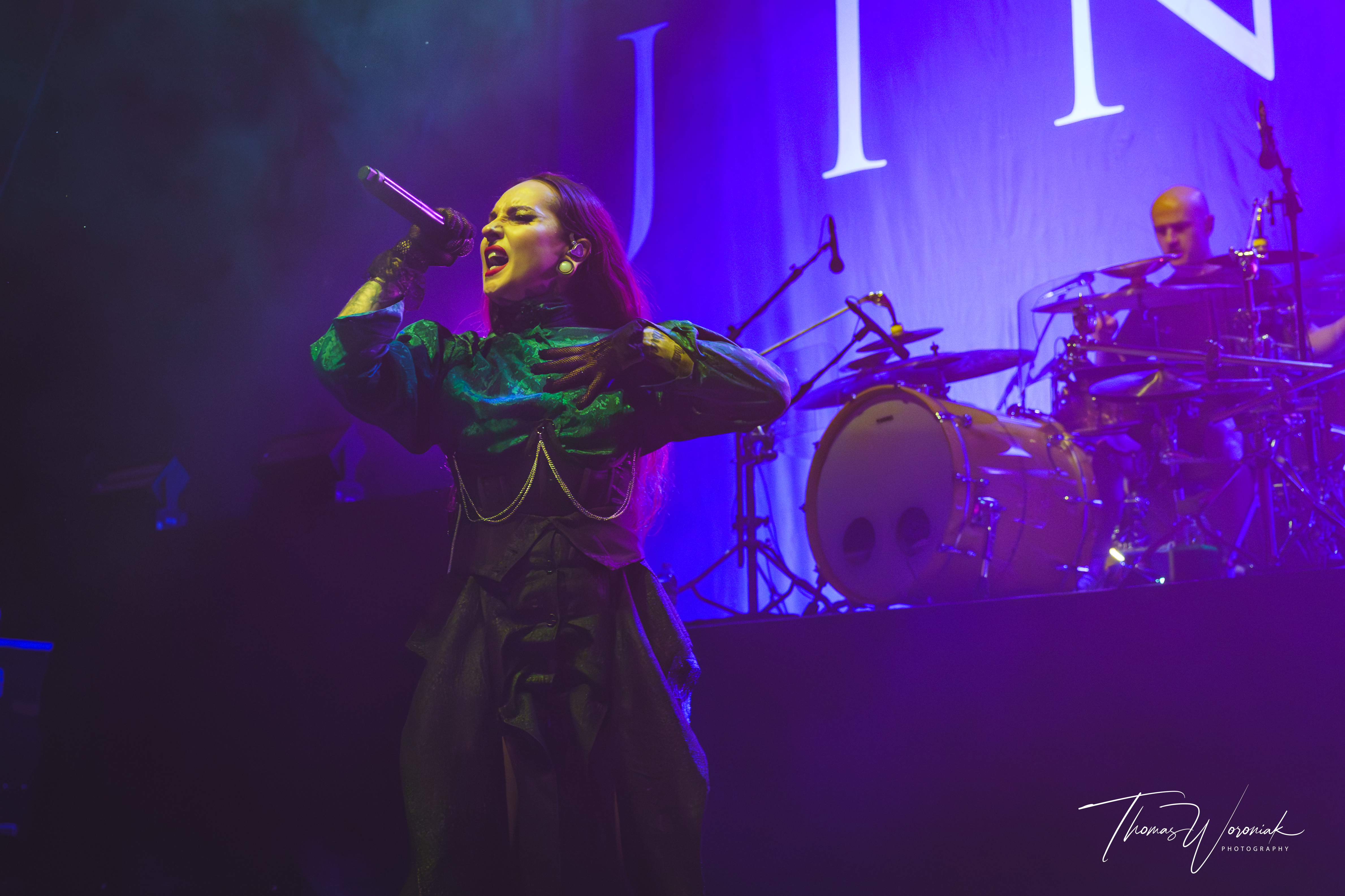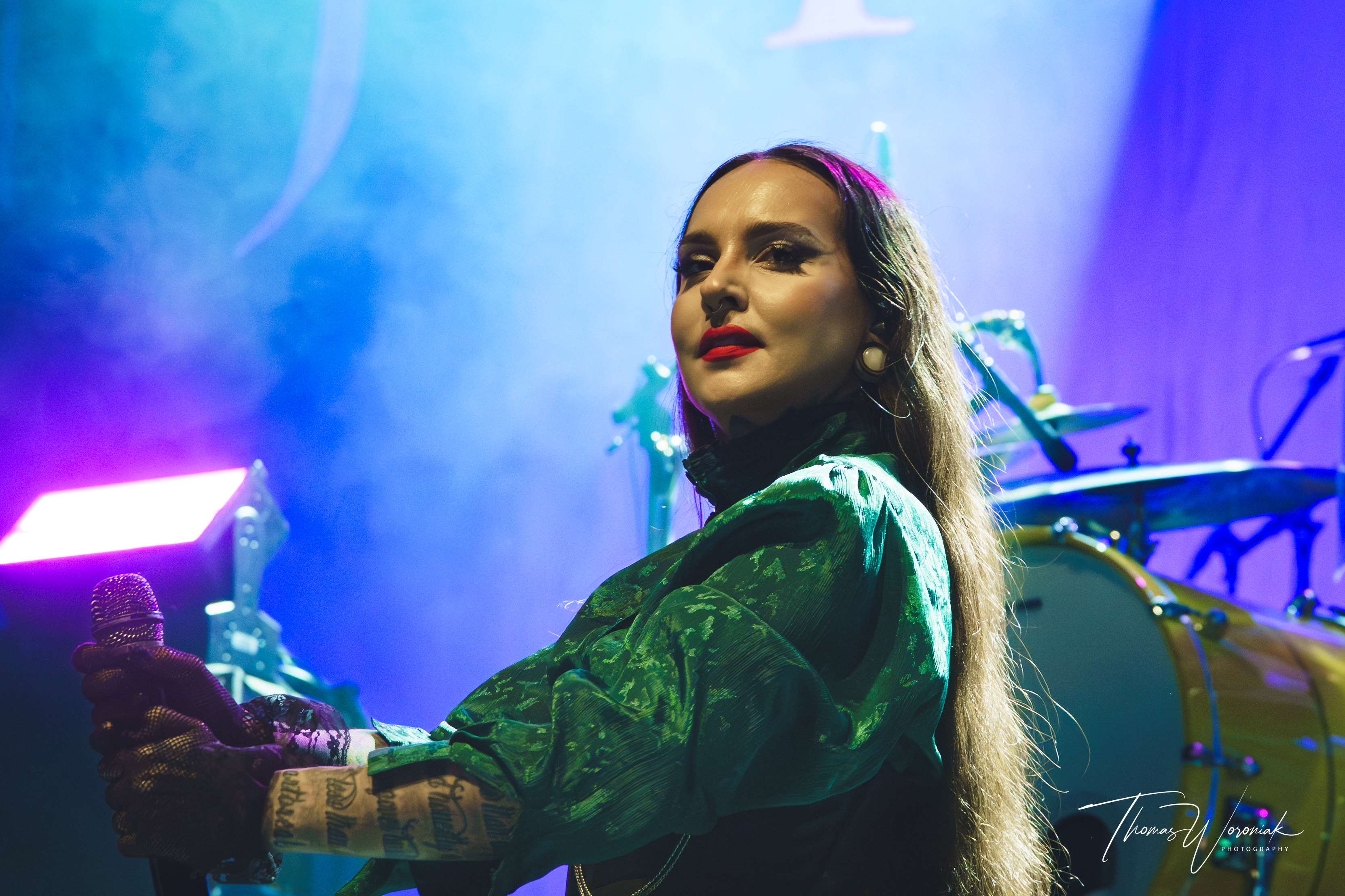That tension exploded into motion with Jinjer, whose reputation as one of metal’s most commanding live acts remains well-earned. Opening with “Duél” and “Green Serpent,” the band immediately demonstrated their effortless command of groove, technicality, and rhythmic complexity. Tatiana Shmayluk’s vocal performance was the undeniable centerpiece—shifting seamlessly from brutal lows to melodic clarity without losing intensity.